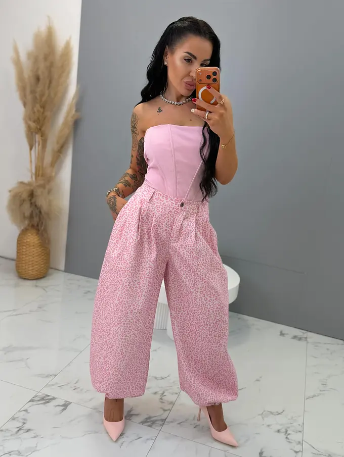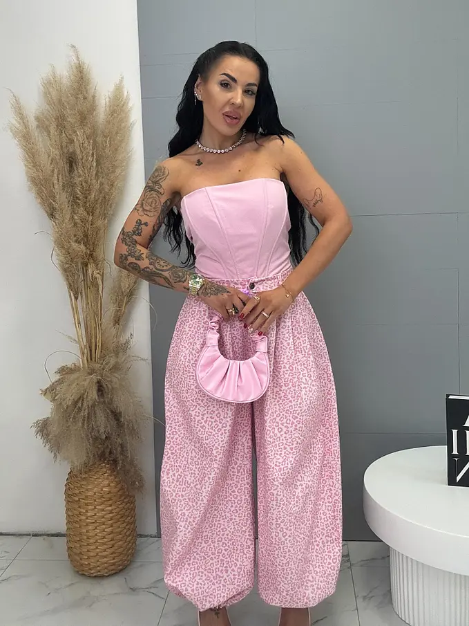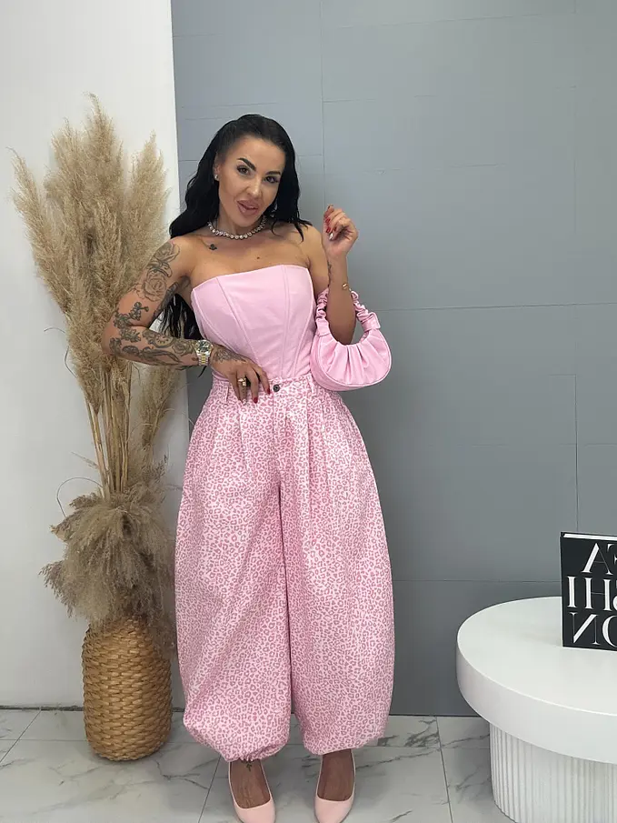 Prémium minőség. Az anyag csak minimálisan rugalmas. Balloon fazonú farmer. A nadrág alja gumival összehúzott. Oldalzsebekkel és gumis derékrésszel.