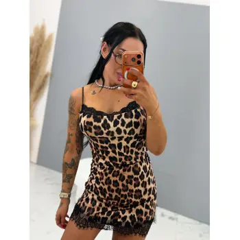 Leopárdmintás kétrészes szett - csipkés szoknyanadrág és top KYRA