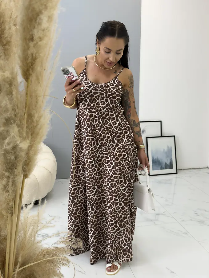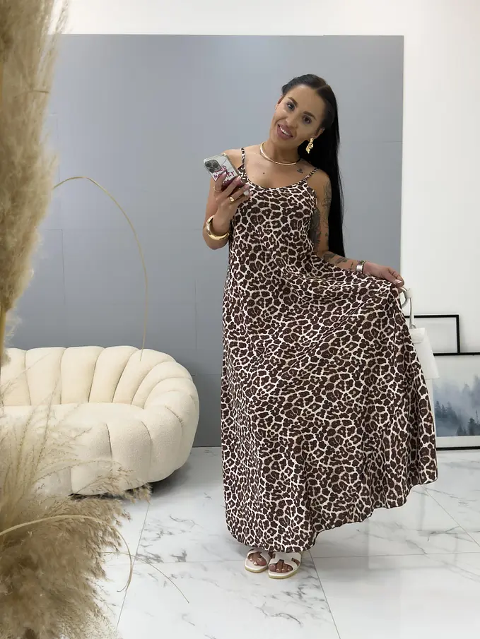Leopárdmintás szatén maxi ruha FELICIA