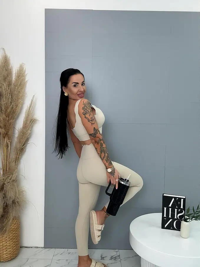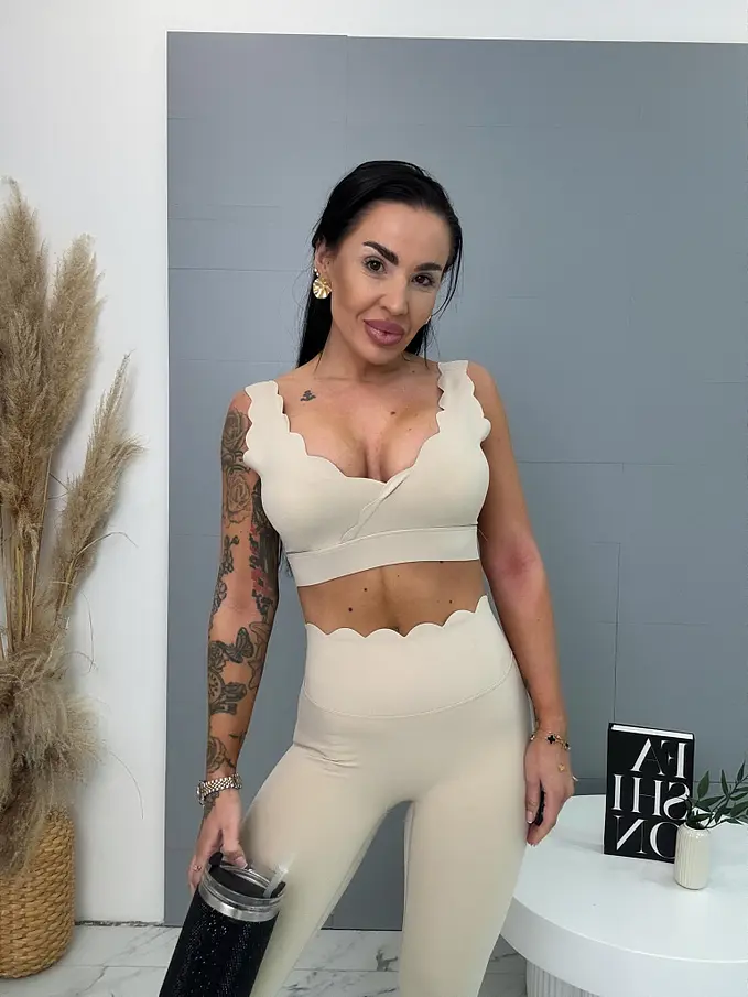 Divatos szett extravagáns hölgyeknek. A szett crop-topból és nadrágból áll. Anyaga elasztikus, nem átlátszó minőségi anyag, ami eltakarja a bőrhibákat. A nadrág dereka elasztikus. A crop top melltöméses.