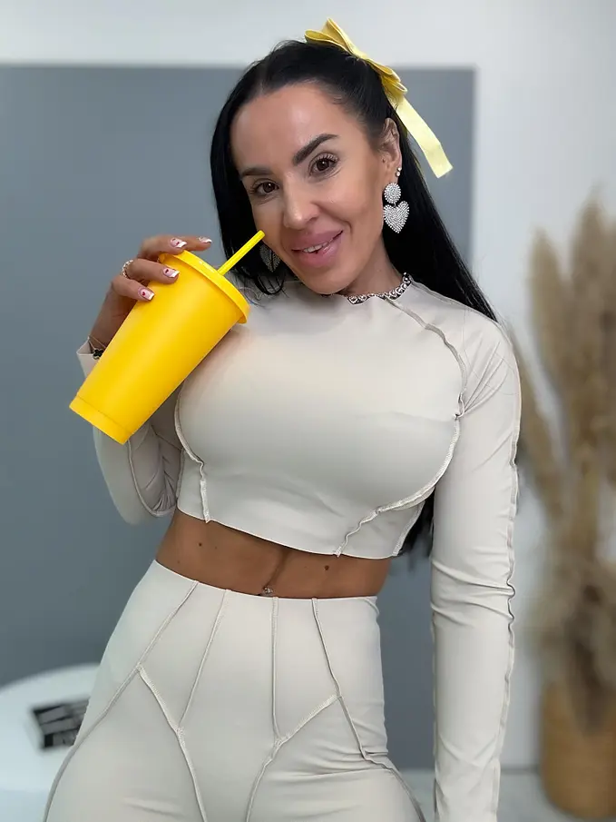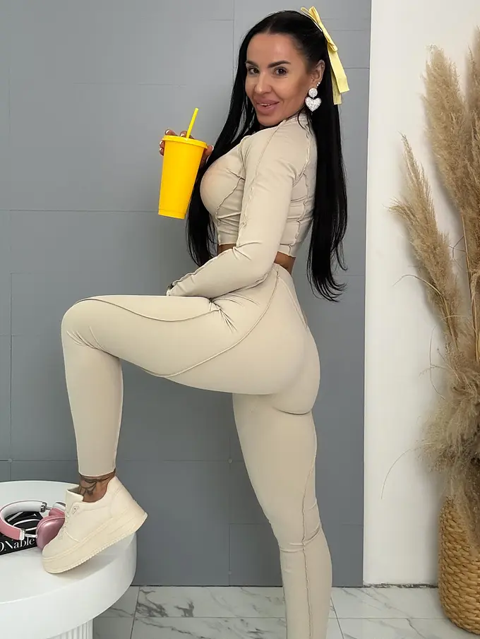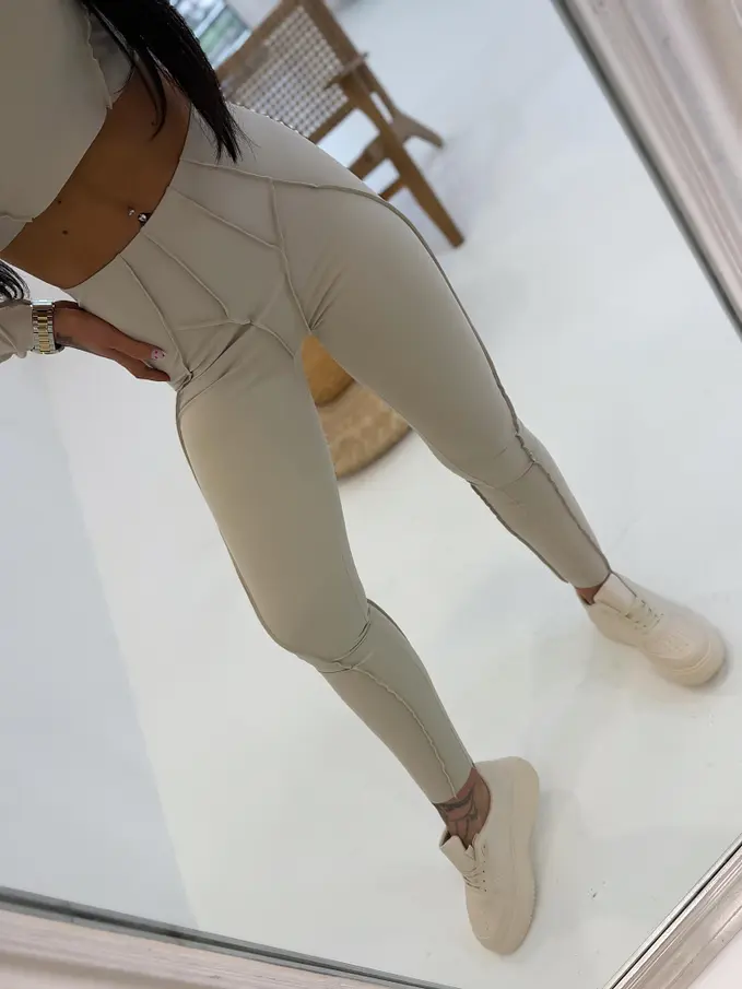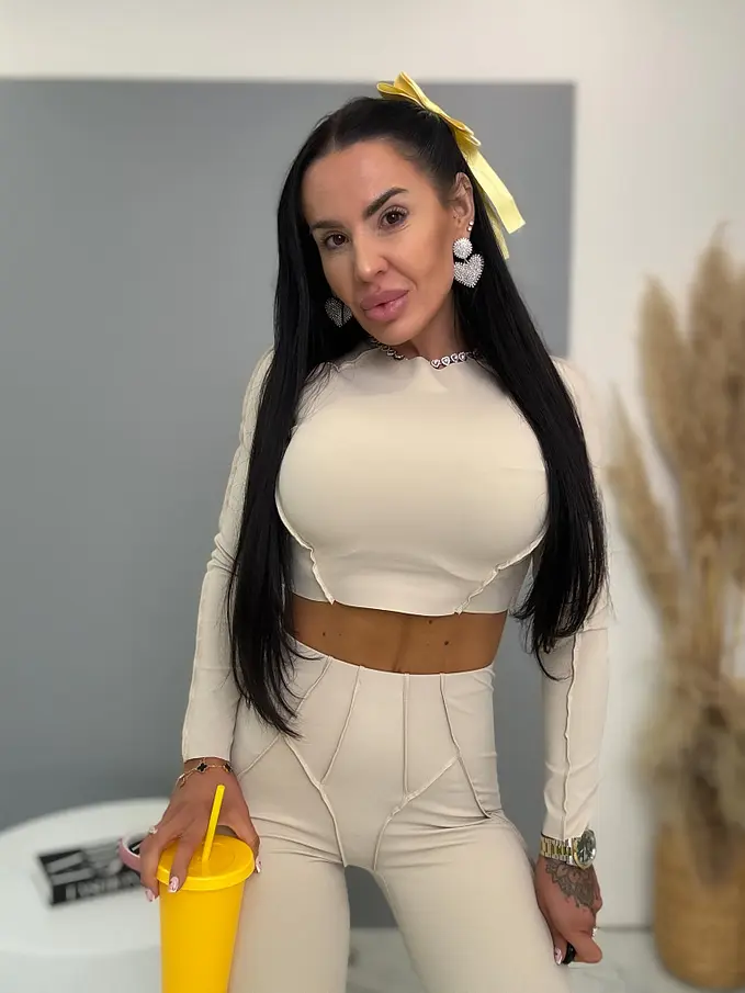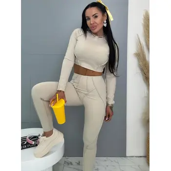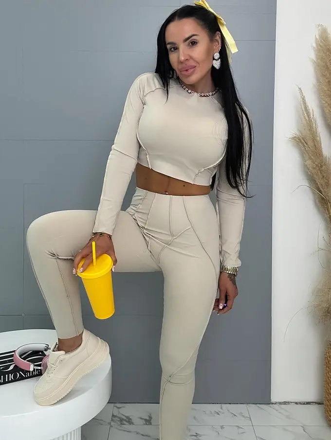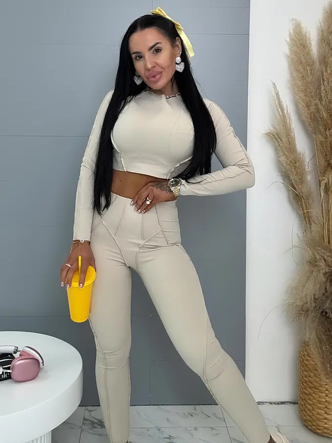 Divatos szett extravagáns hölgyeknek. A szett crop-topból és nadrágból áll. Anyaga elasztikus, nem átlátszó minőségi anyag, ami eltakarja a bőrhibákat. A nadrág dereka gumis.