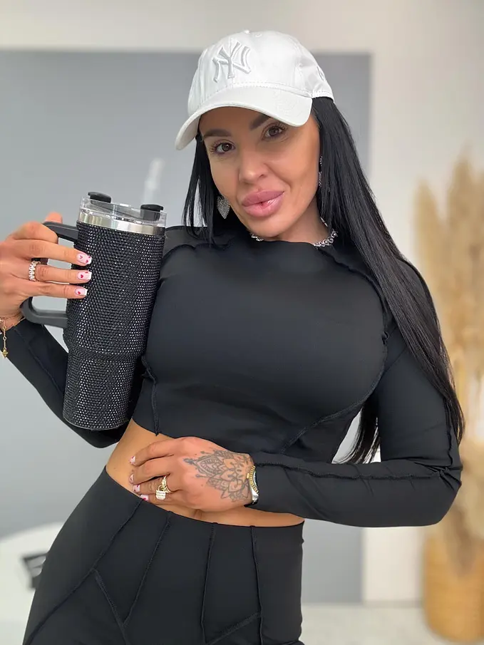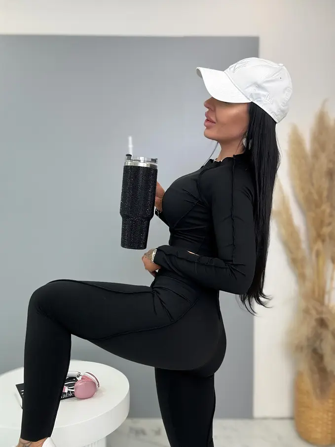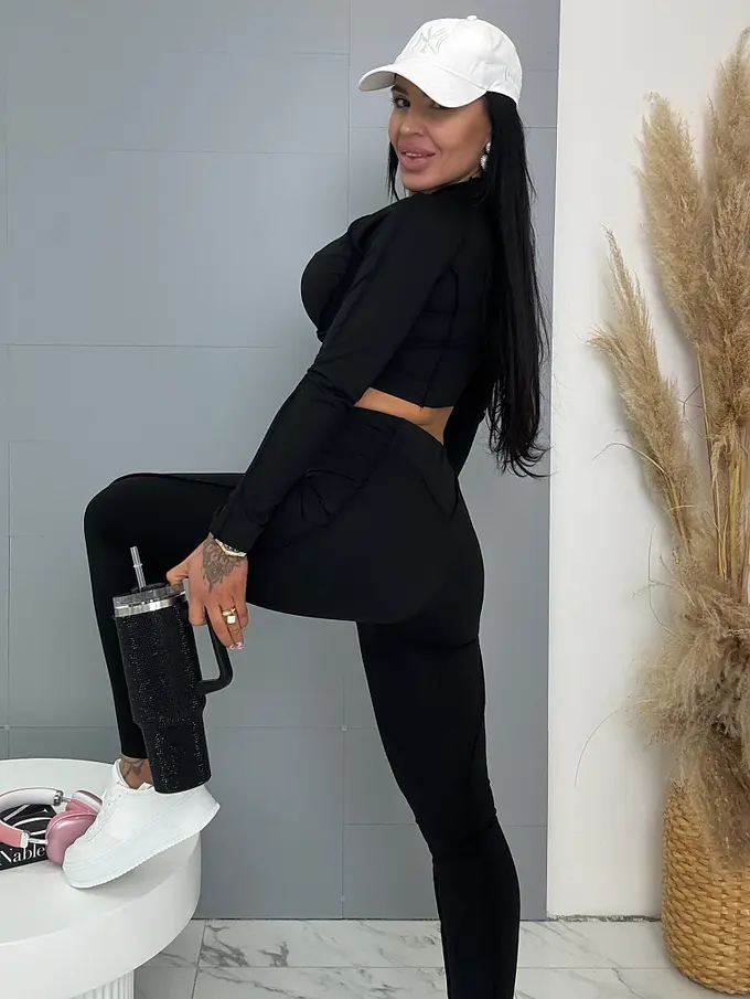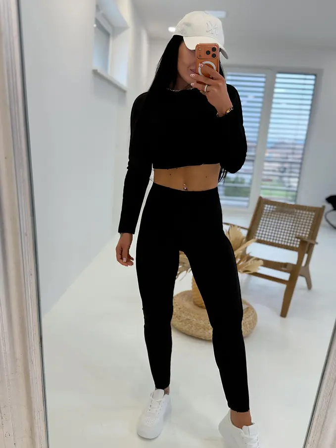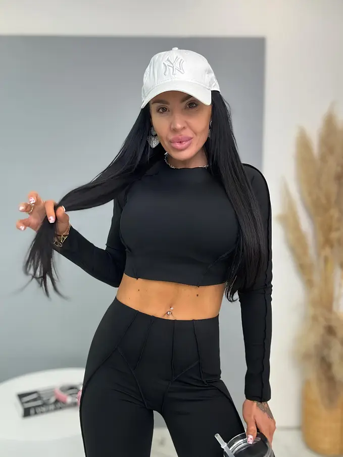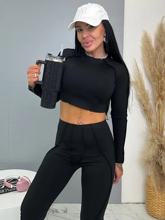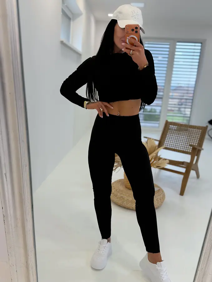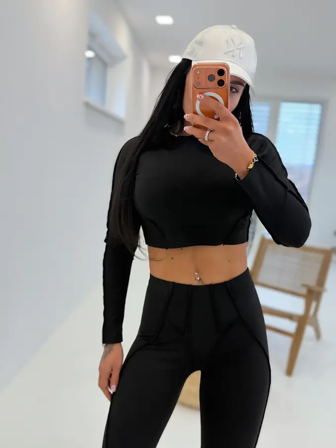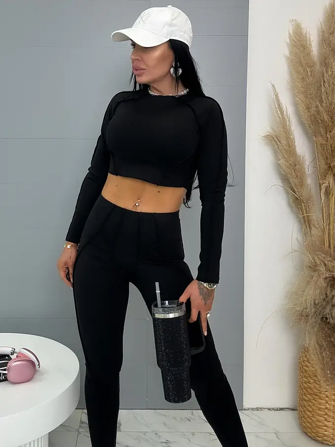 Divatos szett extravagáns hölgyeknek. A szett crop-topból és nadrágból áll. Anyaga elasztikus,nem átlátszó minőségi anyag, ami eltakarja a bőrhibákat. A nadrág dereka gumis.