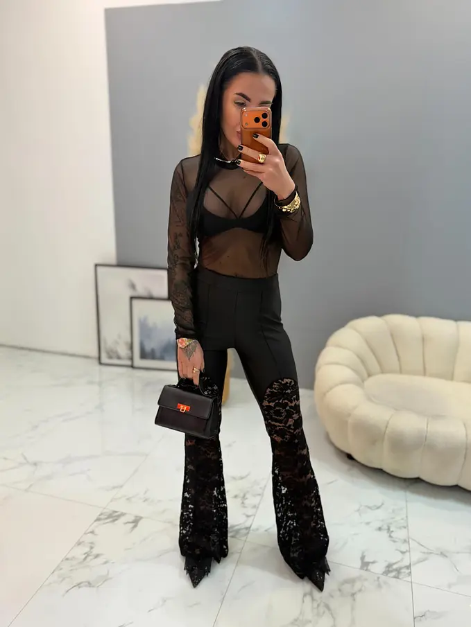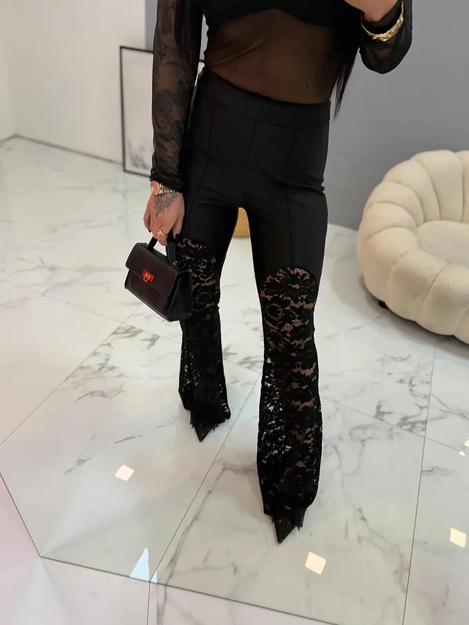 Magas derekú trapéz leggings csipkével AVELIA