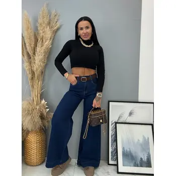 Magas derekú wide-leg farmer övvel