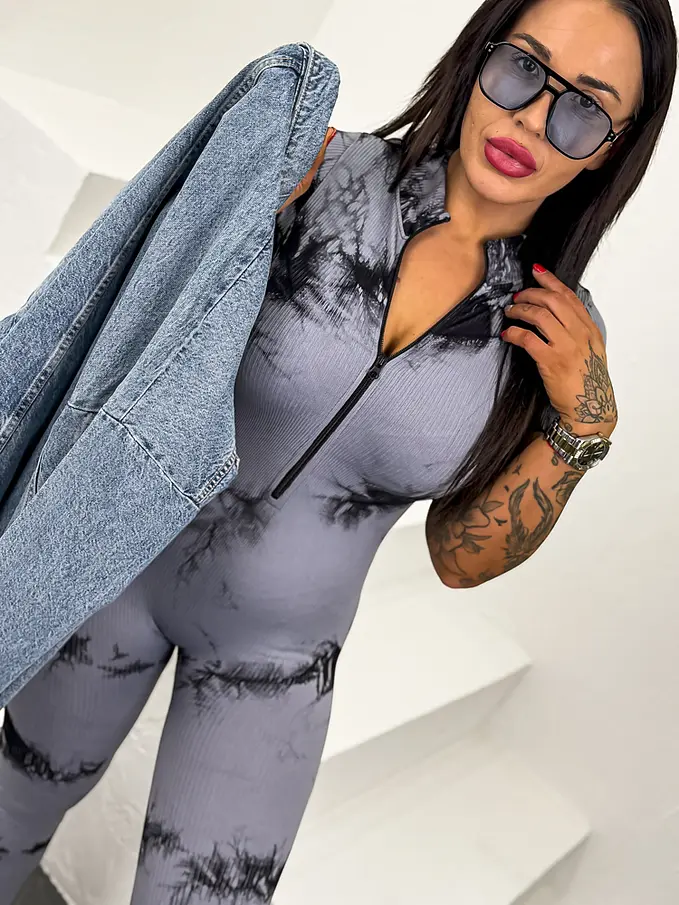 Márványmintás alakformáló bordázott anyagú overál ERYN