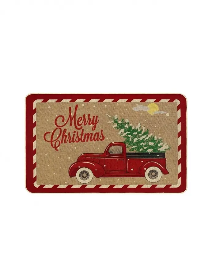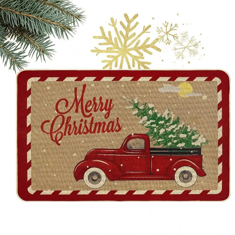 Ez a vidám karácsonyi lábtörlő piros autó motívummal és „MERRY CHRISTMAS” felirattal tökéletes dekoráció az otthonod bejáratához. Üdvözli a vendégeket és ünnepi hangulatot teremt, miközben praktikus a cipők tisztán tartásához.