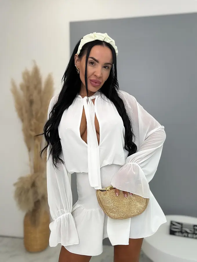 Elegáns sifon ruha megkötős. Anyaga enyhén elasztikus.