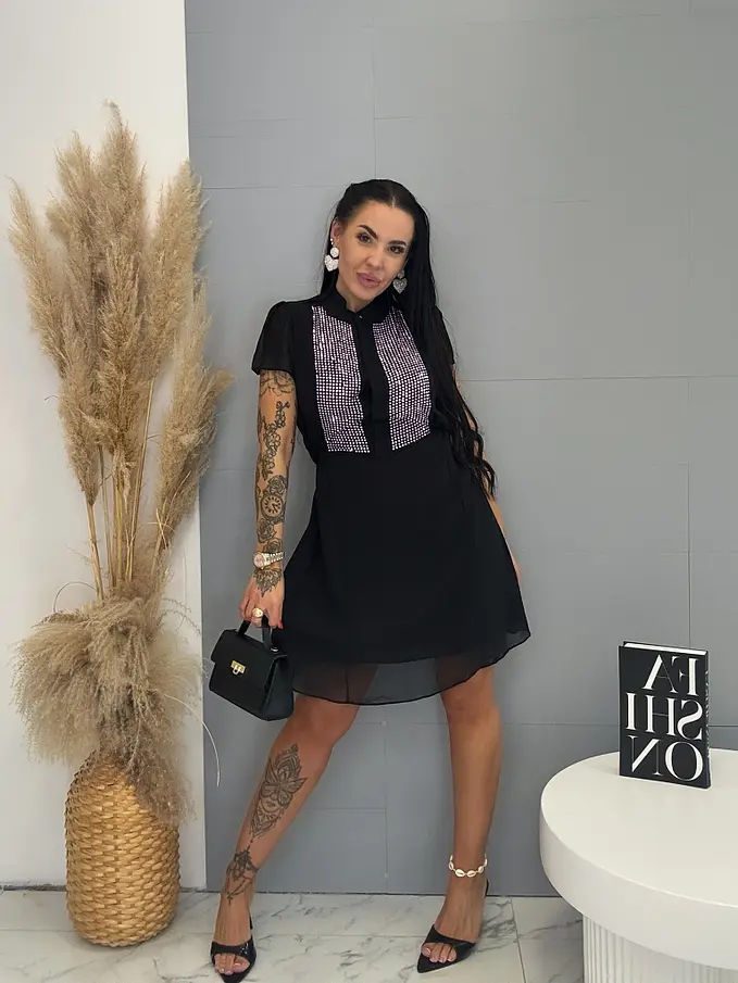 Megkötős sifon ruha kövecskékkel díszítve MIRYA