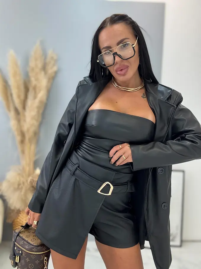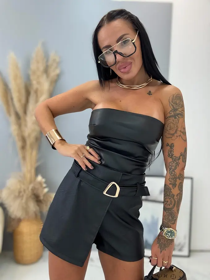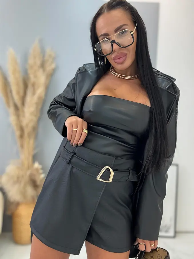 Kényelmes és divatos szoknyanadrág. Anyaga kellemes, enyhén elasztikus. A díszítés arany színű. Hátul cipzárral záródik.