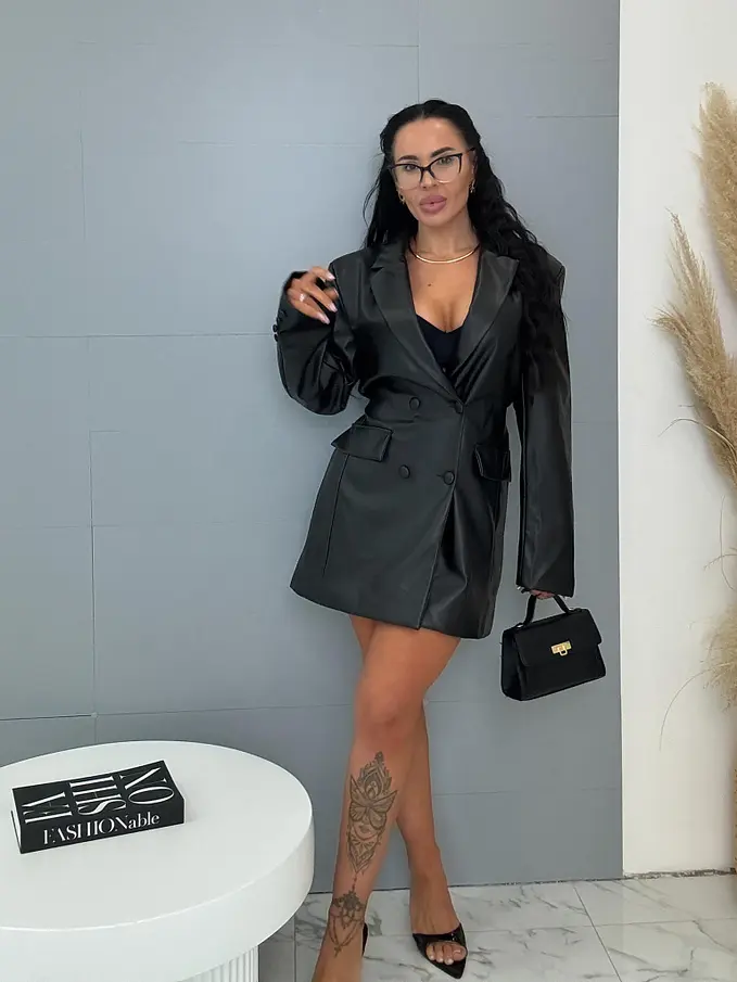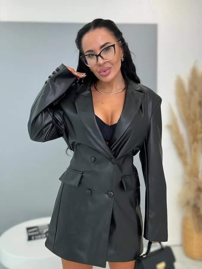 Műbőr zakóruha melltöméssel és övvel BELIRIA
