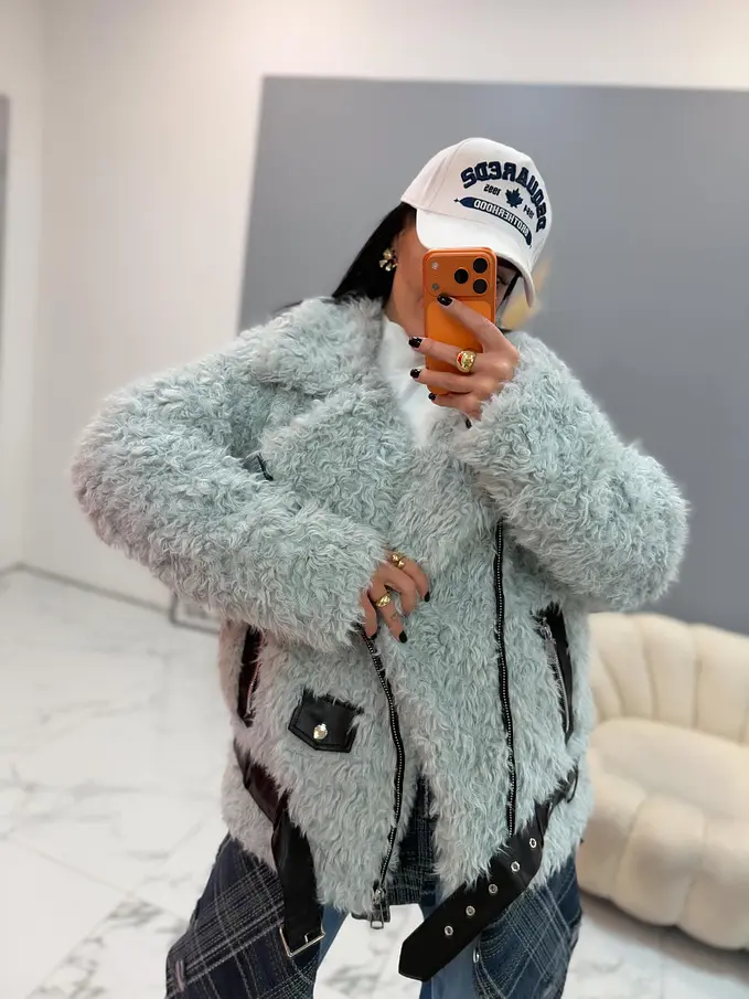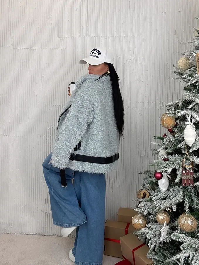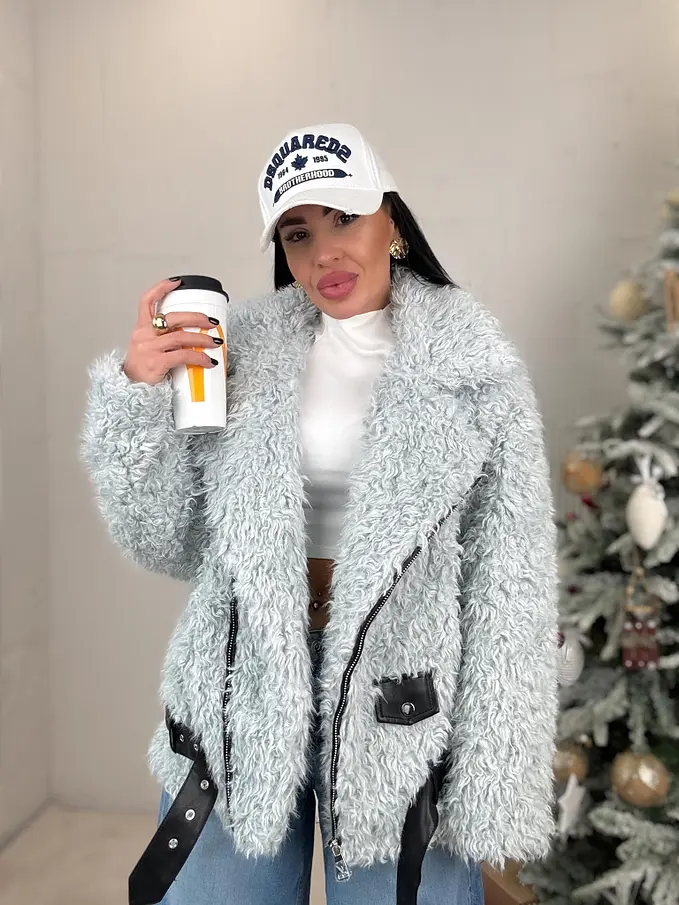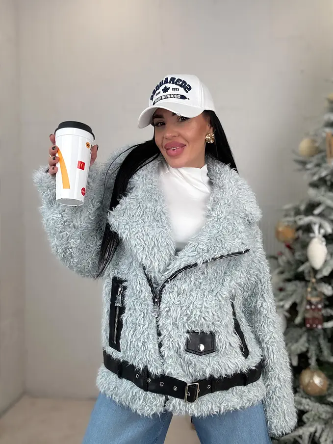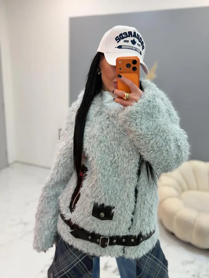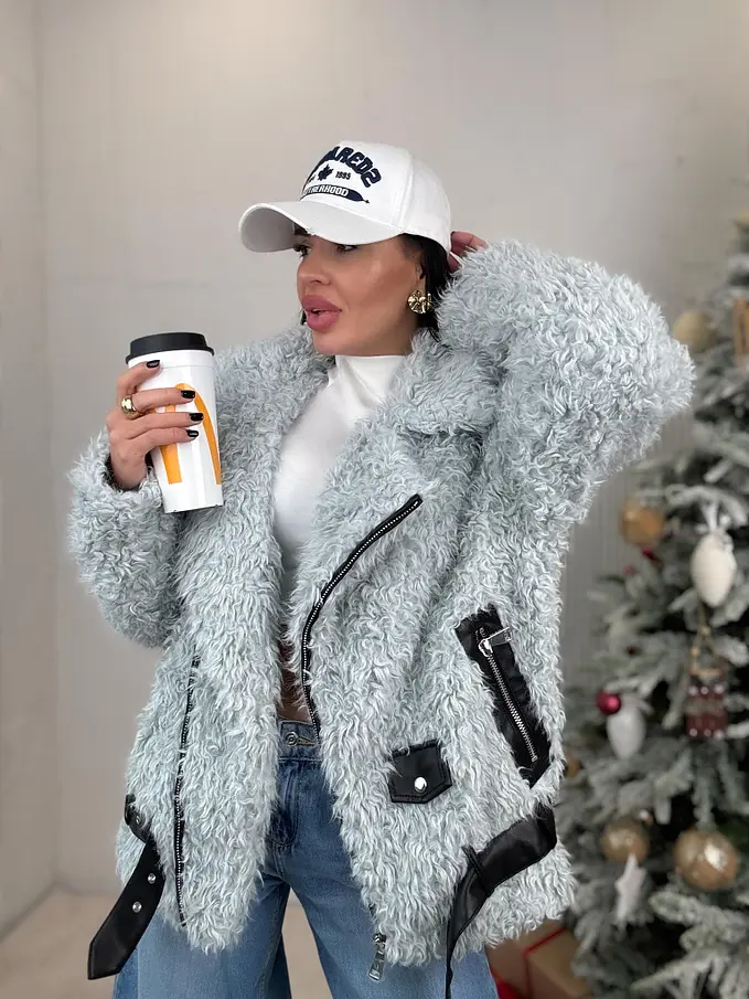 Műszőrmés bunda műbőr díszítéssel POLETT