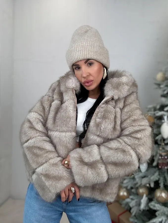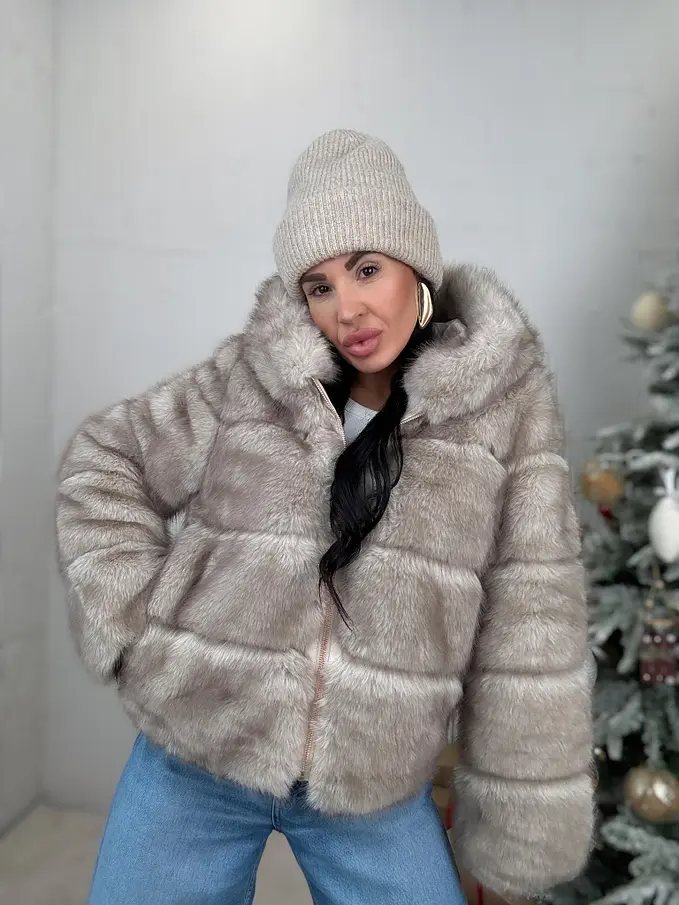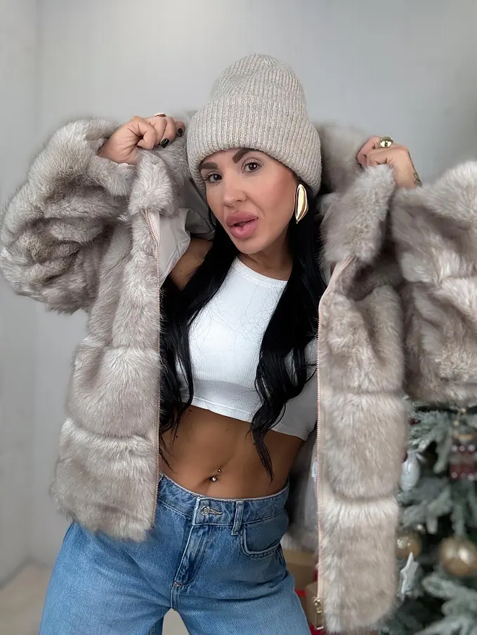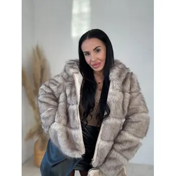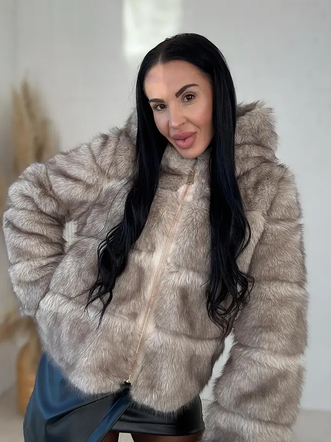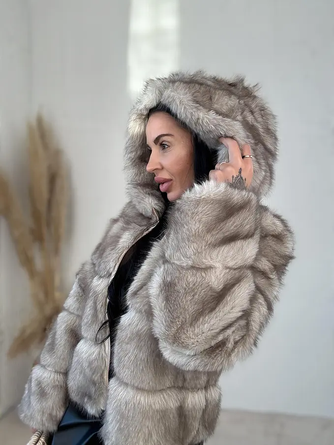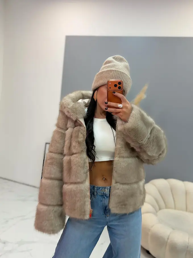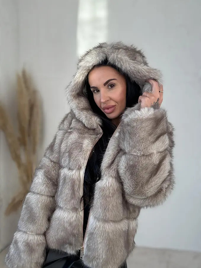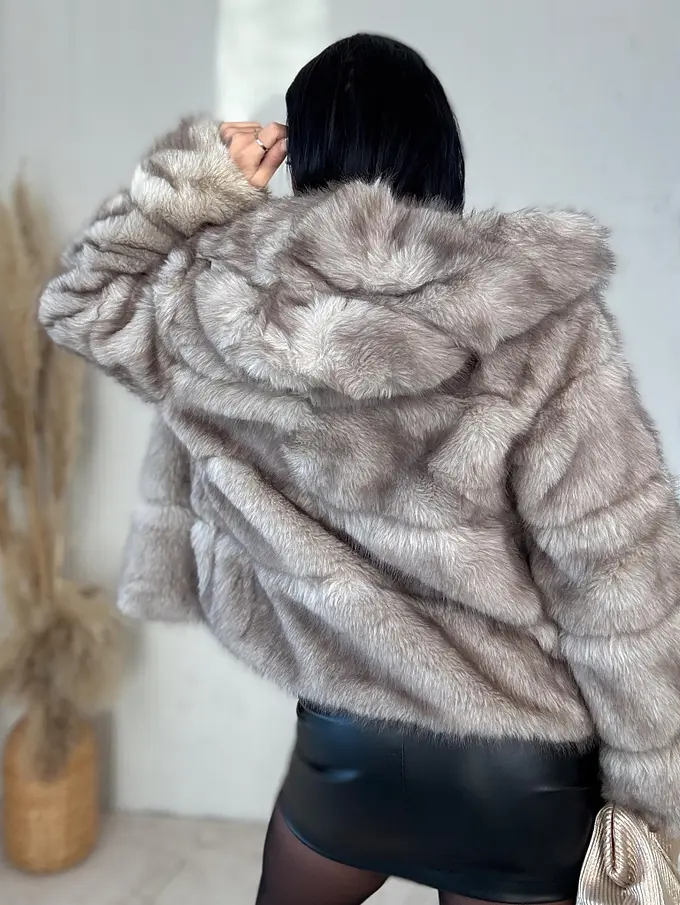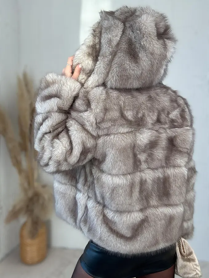 Műszőrmés műbőr kabát kapucnival CHERRY