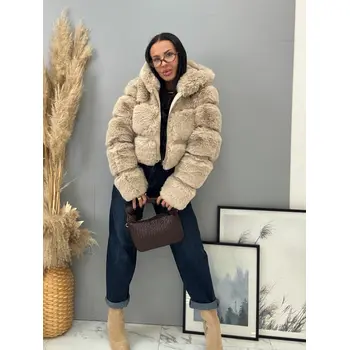 Műszőrmés műbőr kabát kapucnival GIANNA