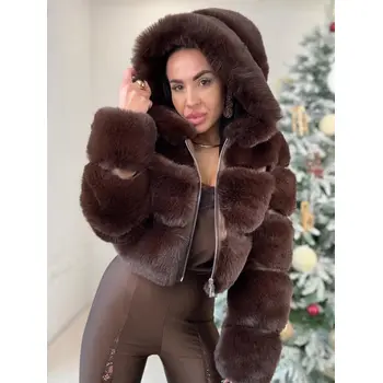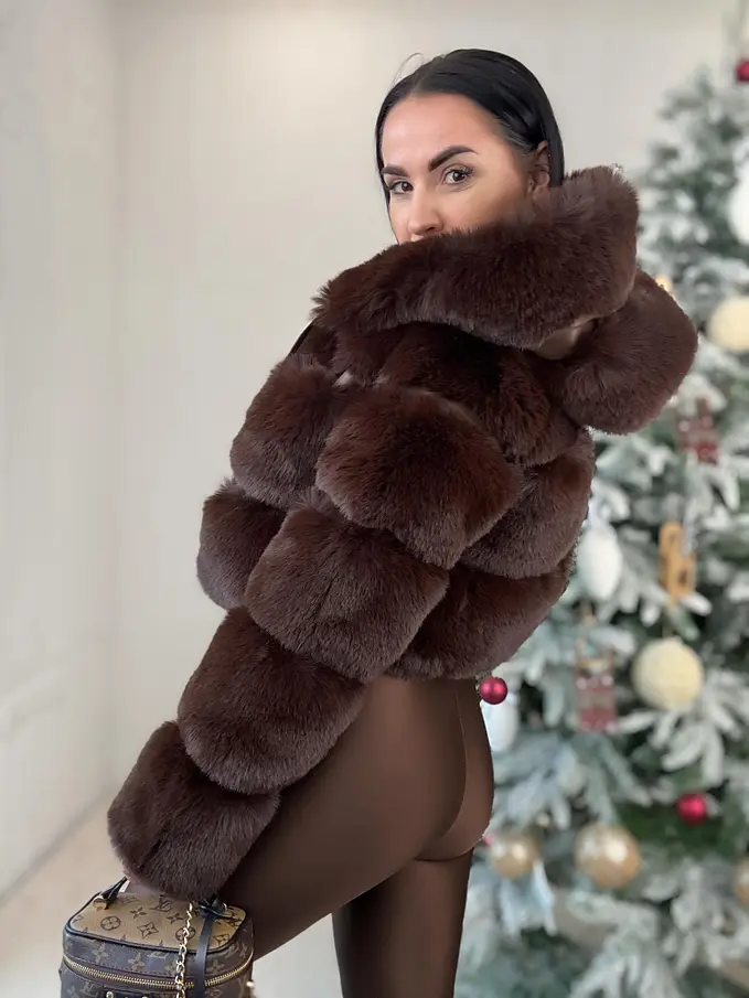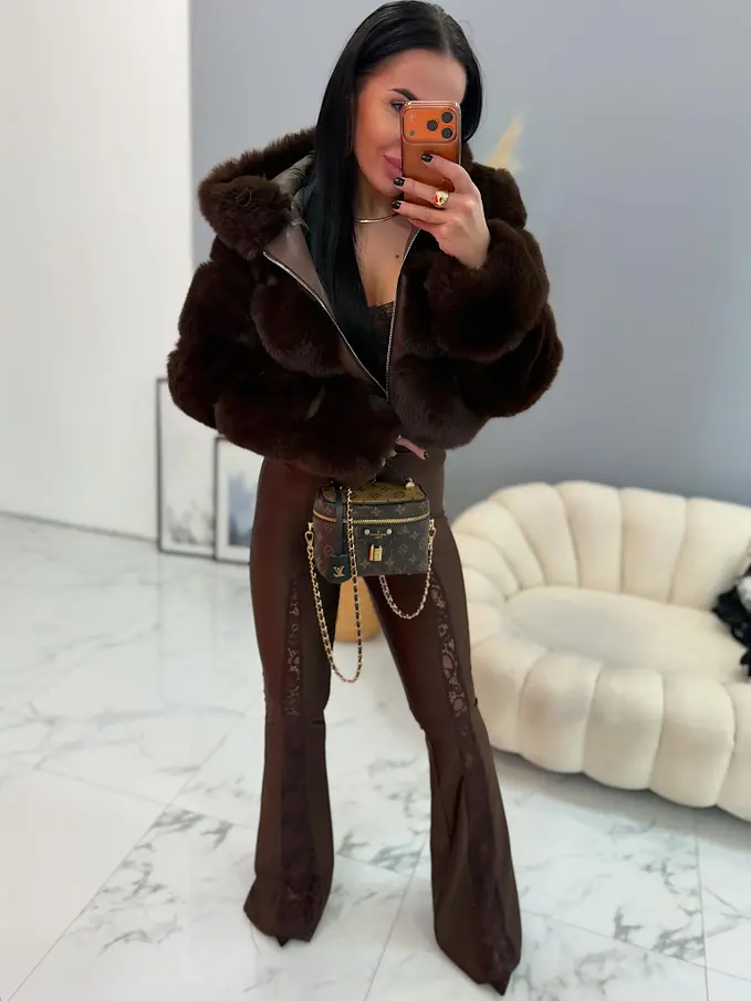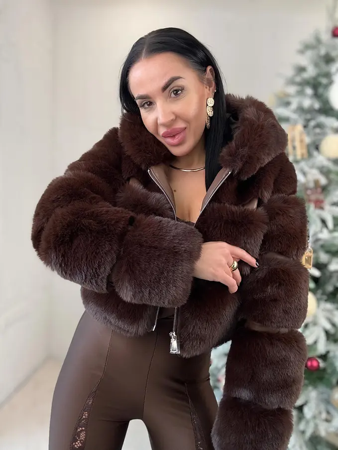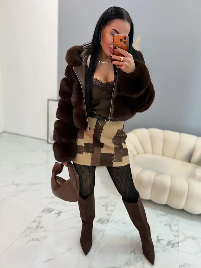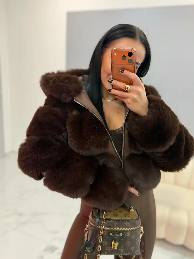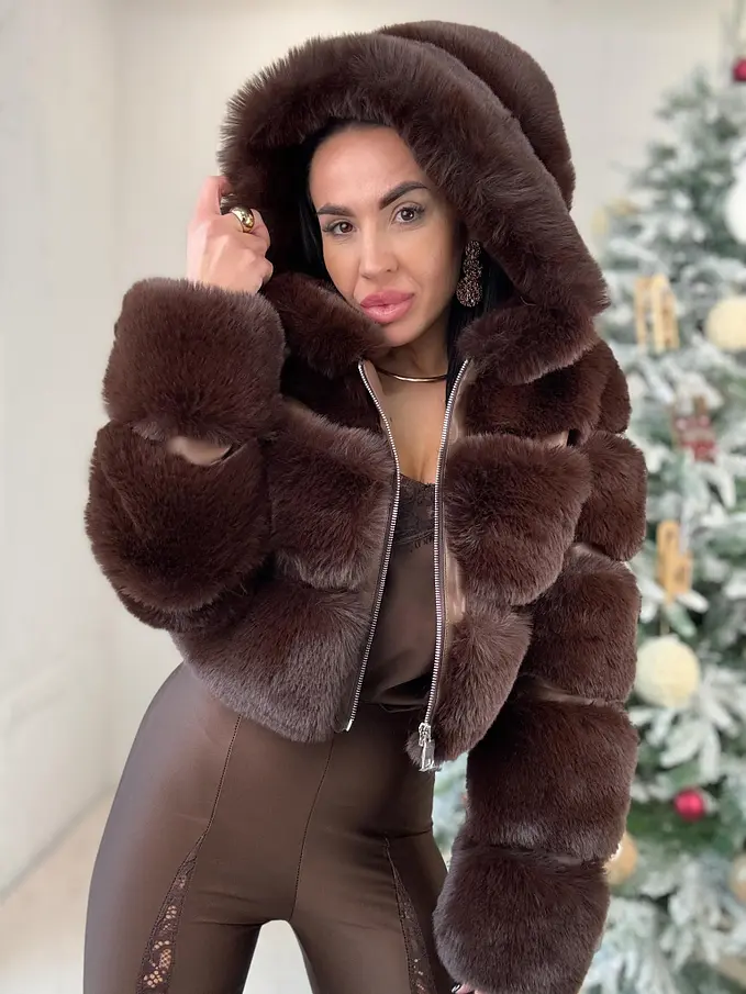 Műszőrmés műbőr kabát kapucnival GIANNA
