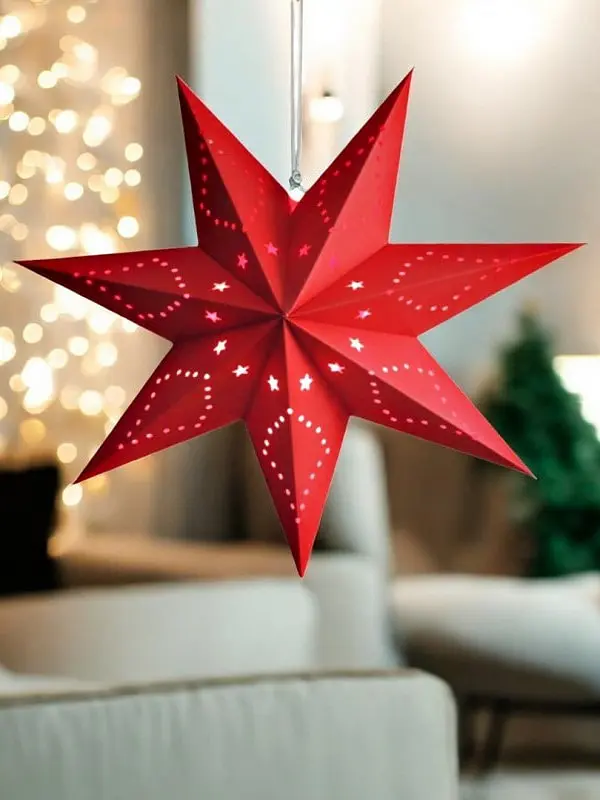 Karácsonyi papír csillag, masszív anyagból. Többször össze- és széthajtható.