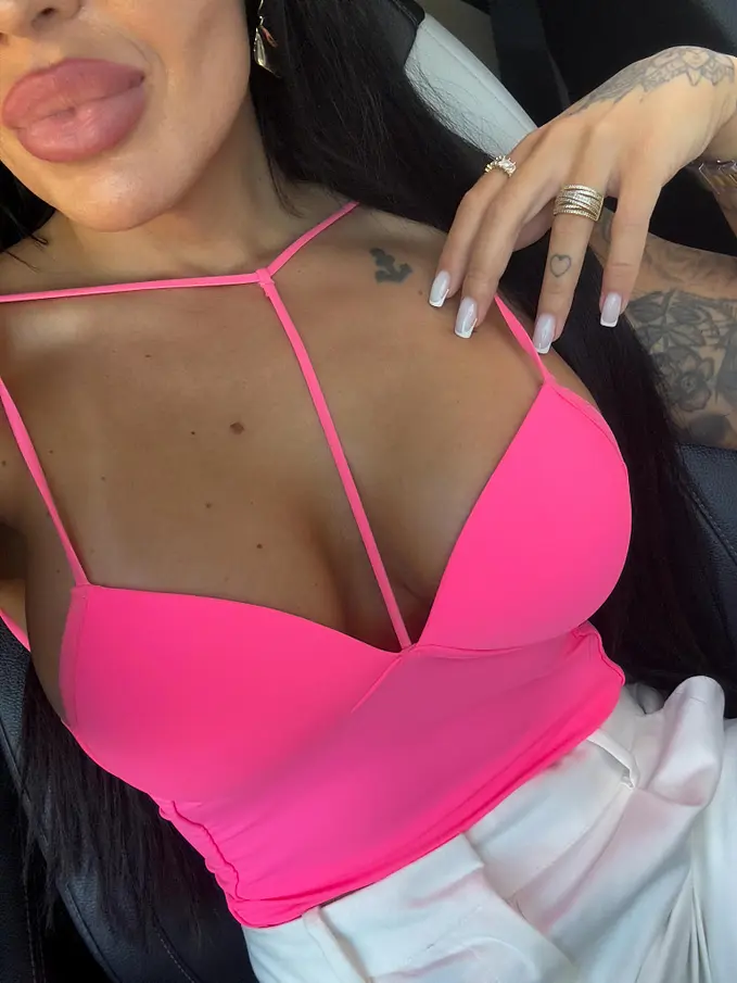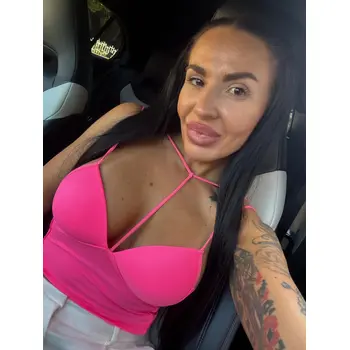 A fekete hajú modell 164 cm magas és 57 kg. S méretű ruhákat visel.
