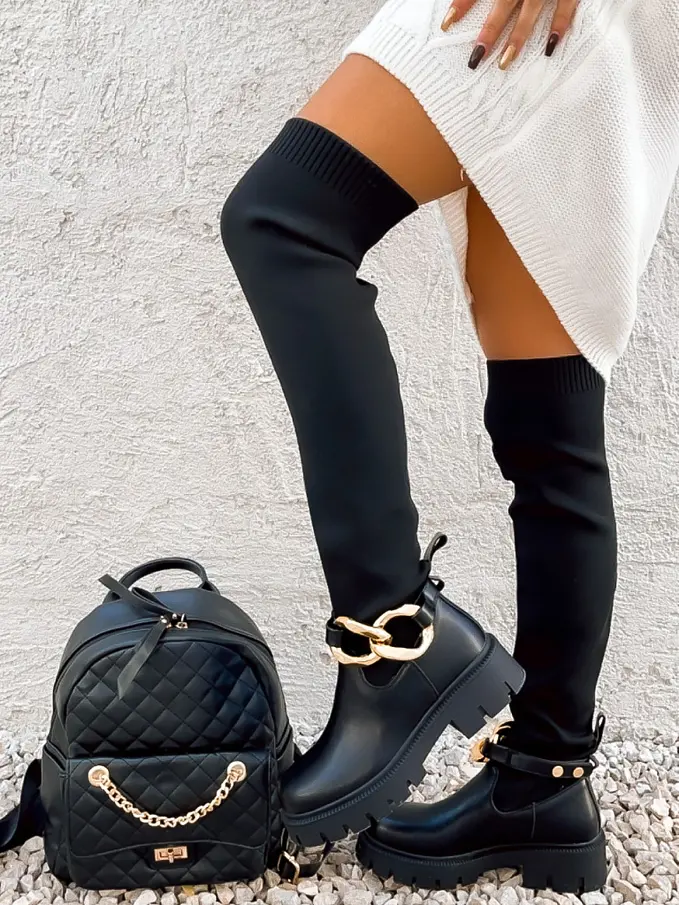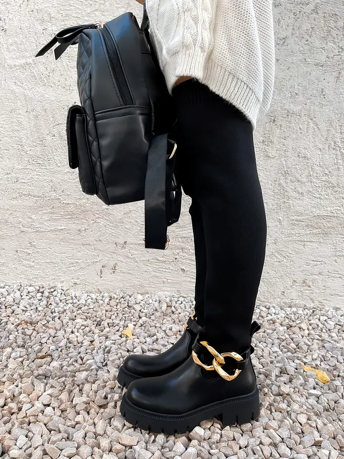 Modern darab, mely az őszi gardrób elengedhetetlen része. Aranylánccal díszítve.