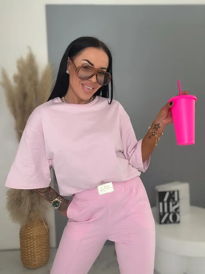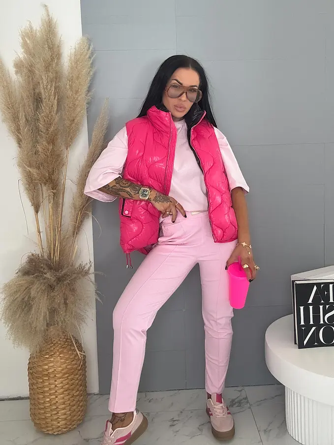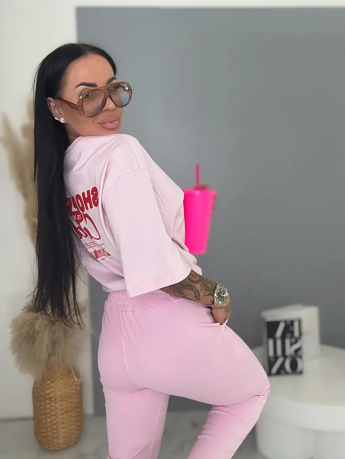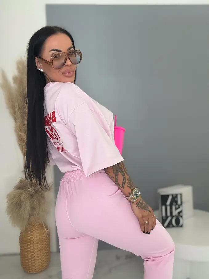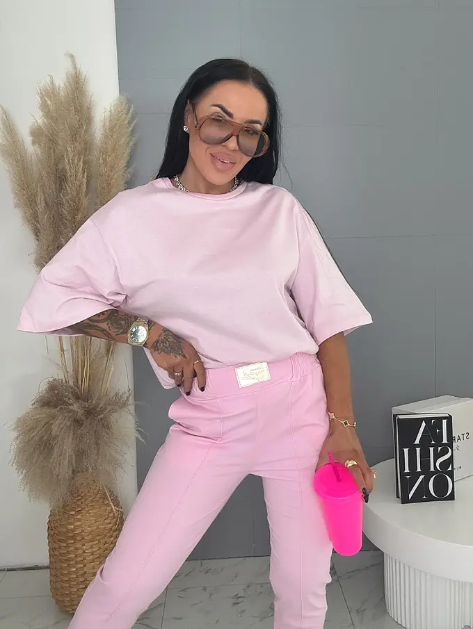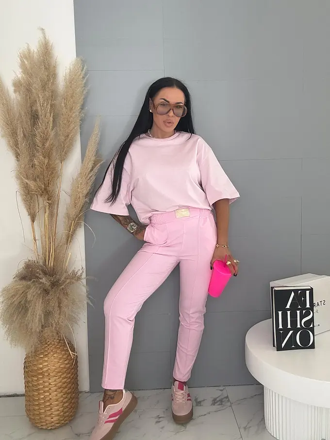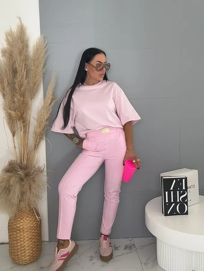 A nadrág kellemes, anyagból készült. A dereka gumis és oldalsó zsebekkel.