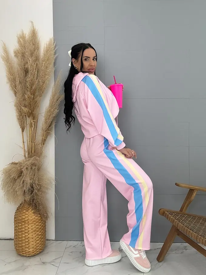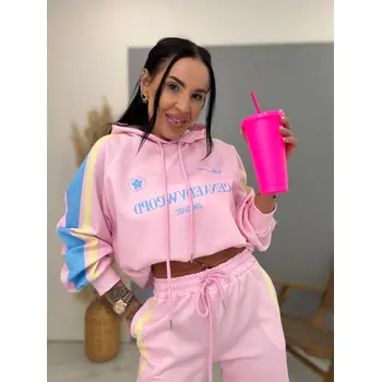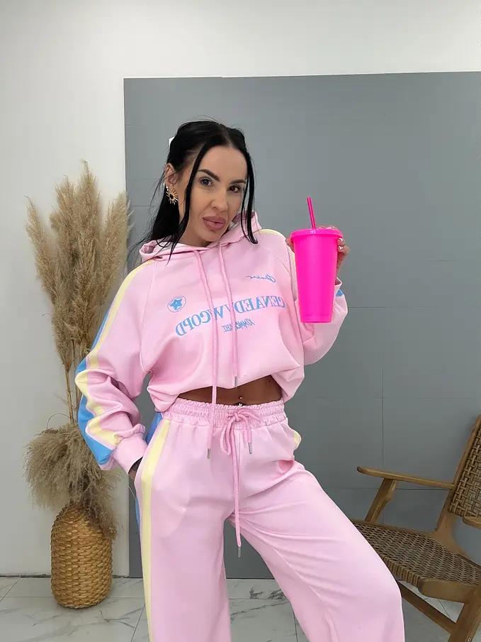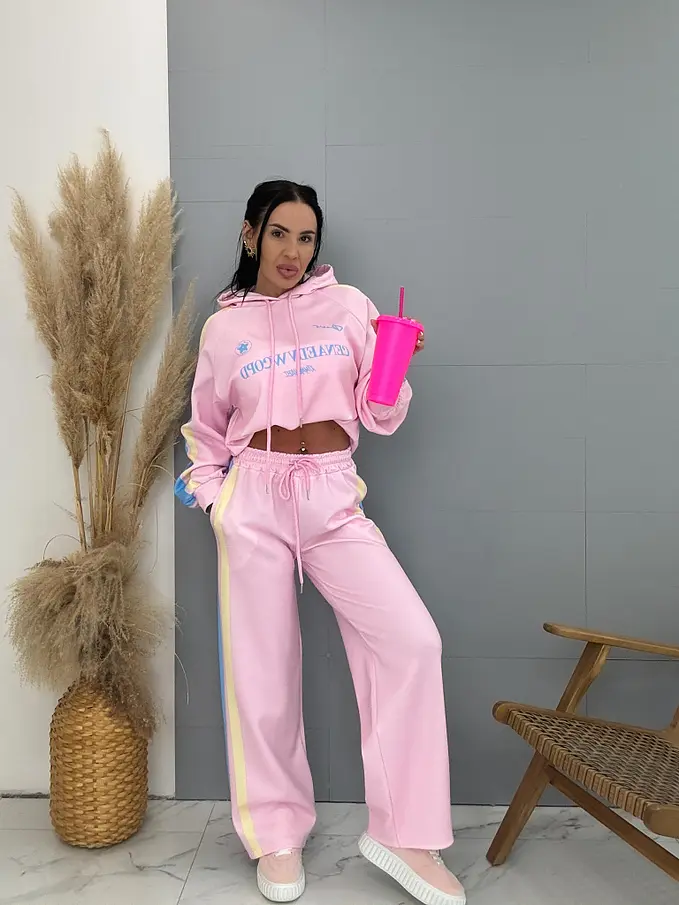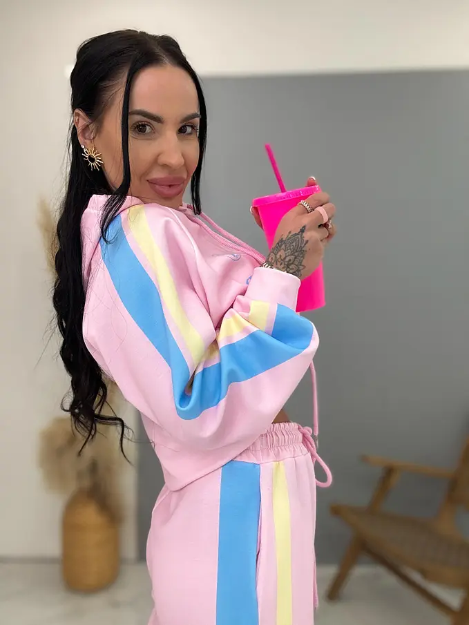 Női sportos együttes a legújabb kollekcióból. Felsőből és gumis derekú nadrágból áll. Anyaga kellemes, elasztikus.