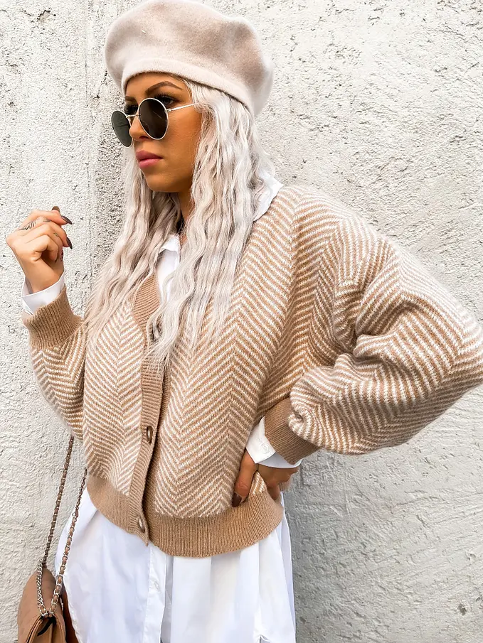 Női elegáns kardigán a hidegebb napokra. A kardigán kellemes anyagból készült. Ezüstös gombokkal.