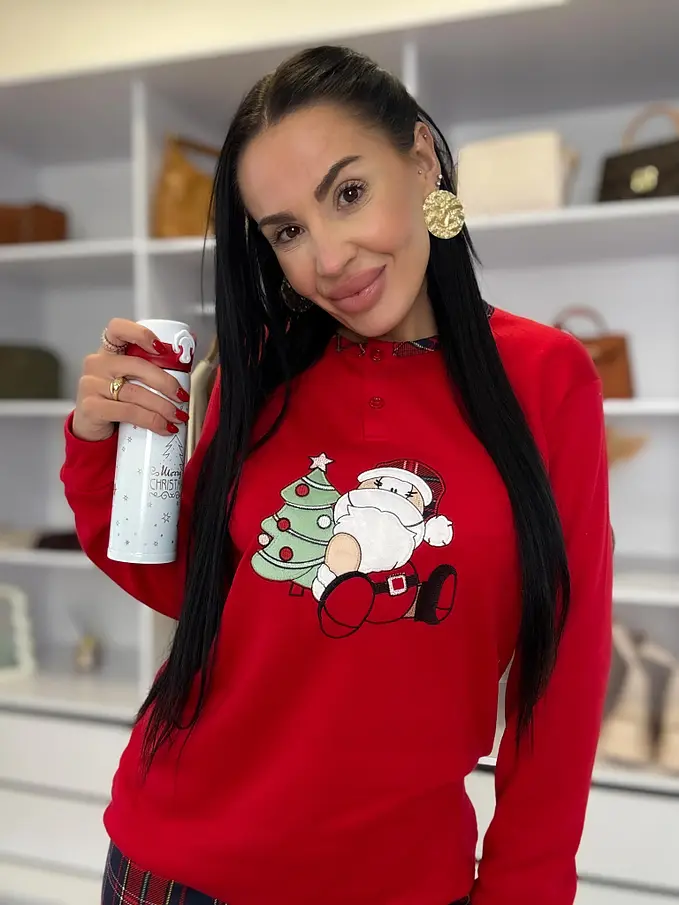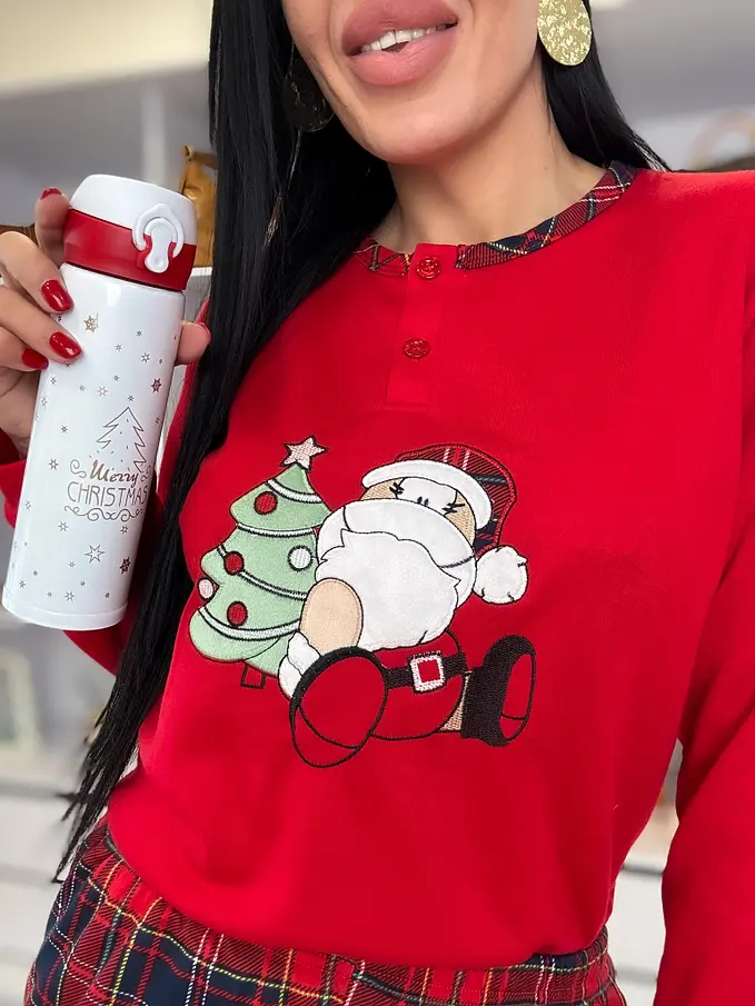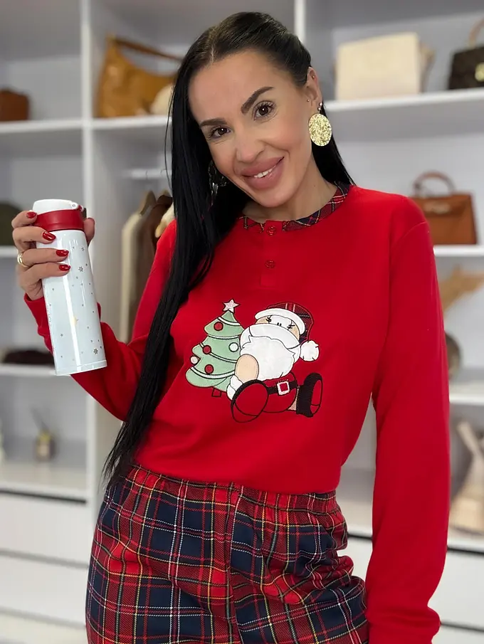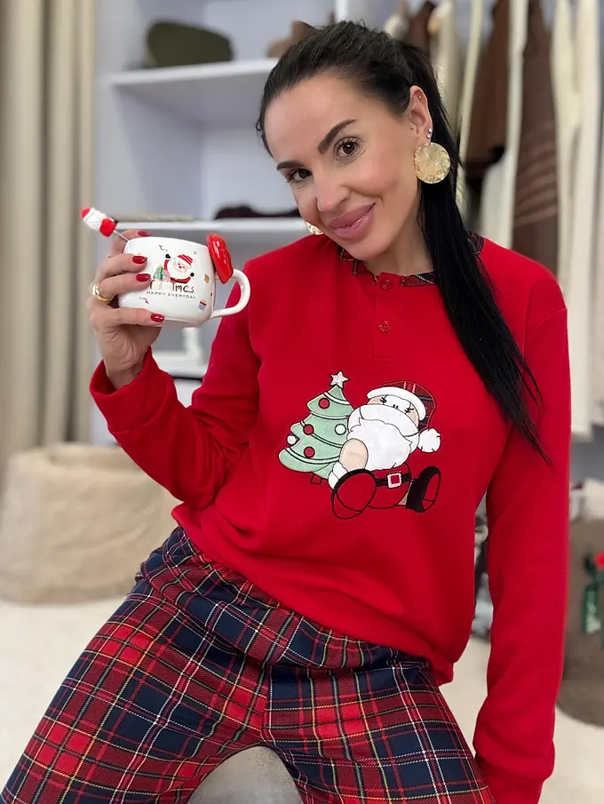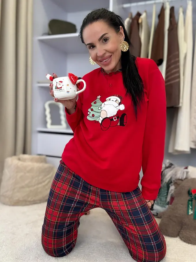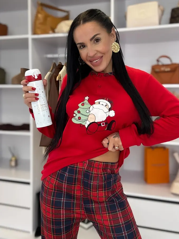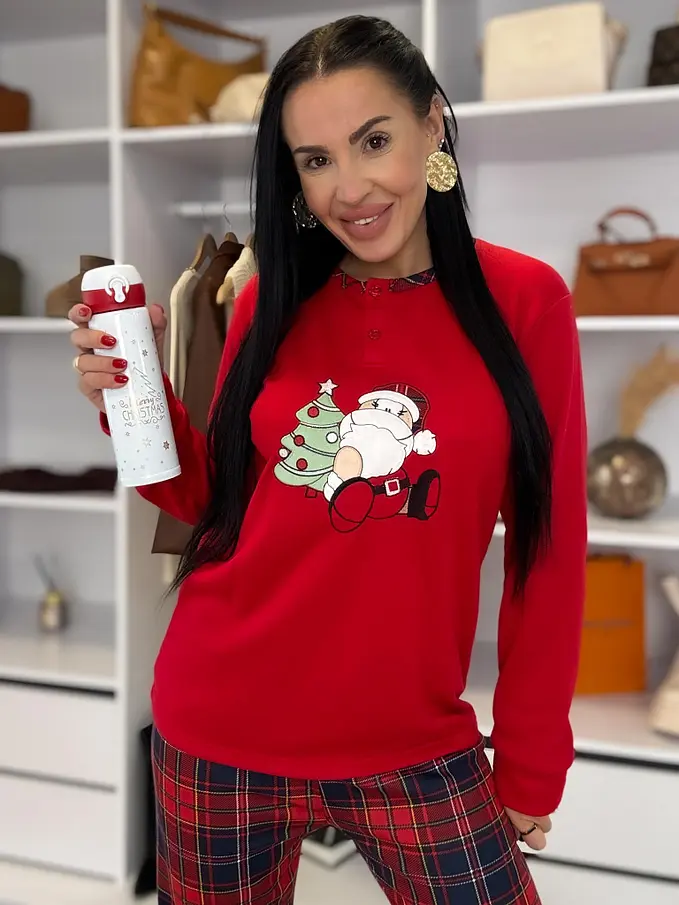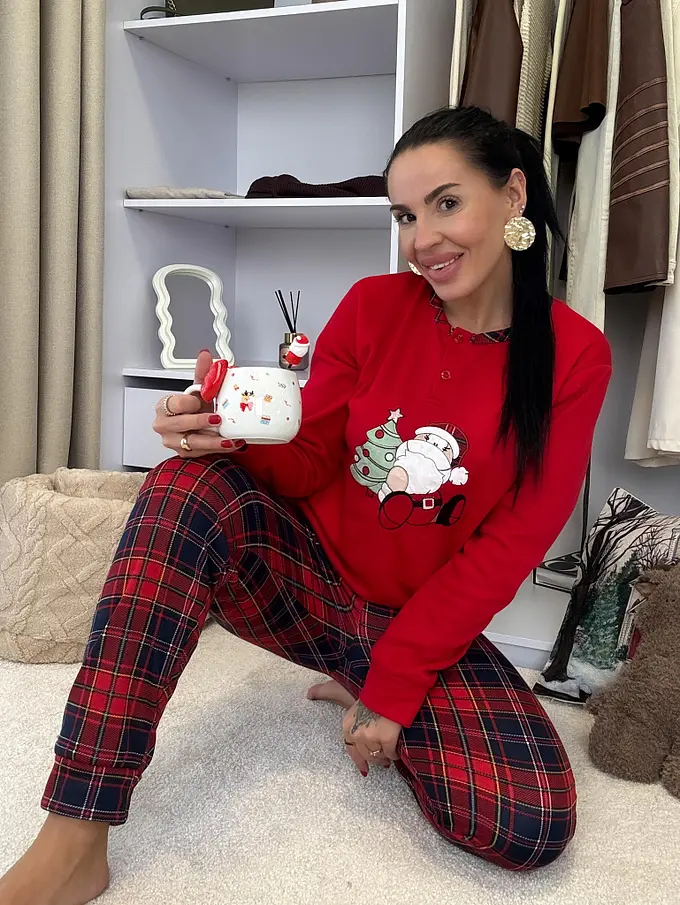 Puha meleg pizsama. A kockás nadrág gumis derekú. Felső rész gomboláspánttal.