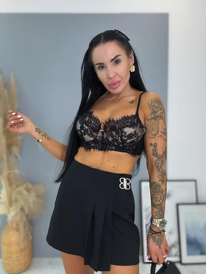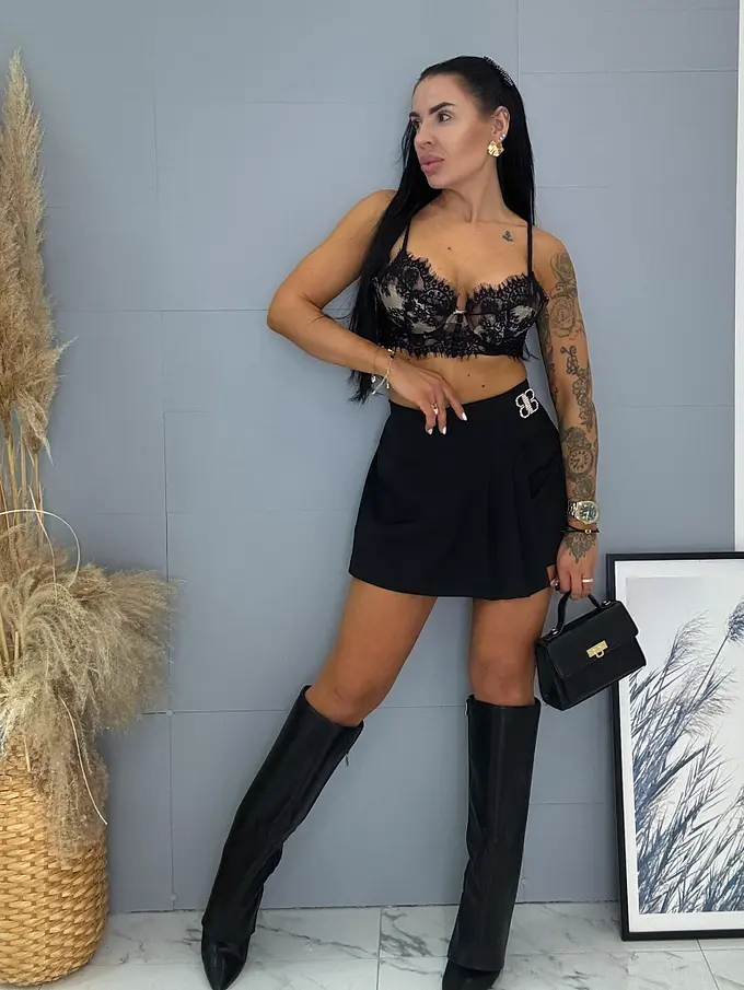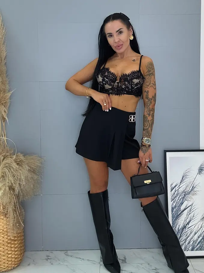 Prémium minőség. Ez a skort a szoknya és a rövidnadrág tökéletes ötvözete: elöl szoknyás hatás, hátul kényelmes short. Anyaga enyhén elasztikus. Gumis derékkal.
