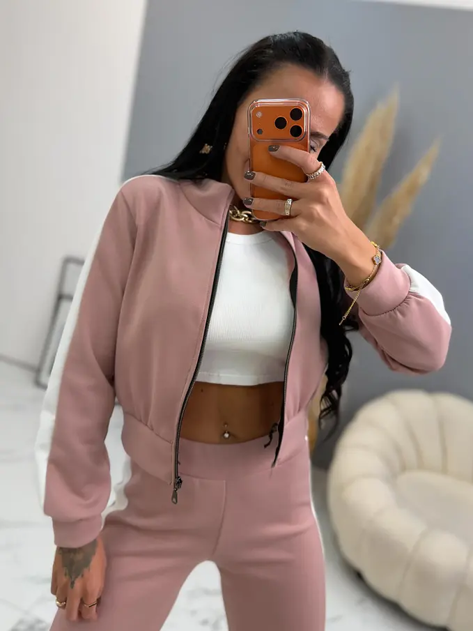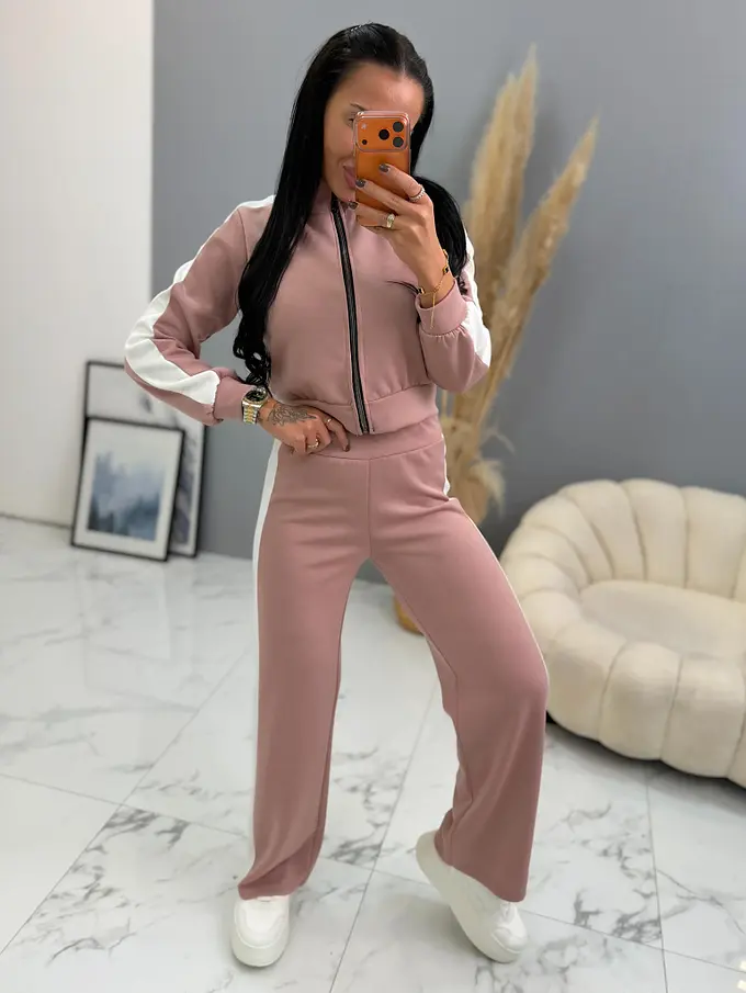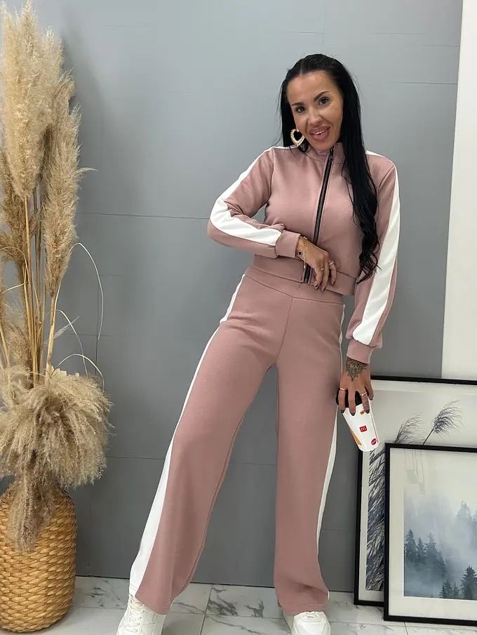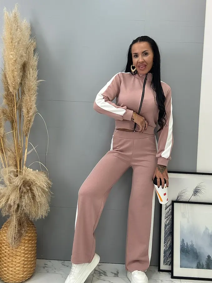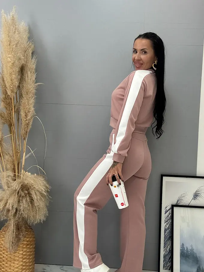 Női sportos együttes a legújabb kollekcióból. Felsőből és gumis derekú nadrágból áll. Anyaga kellemes, elasztikus.