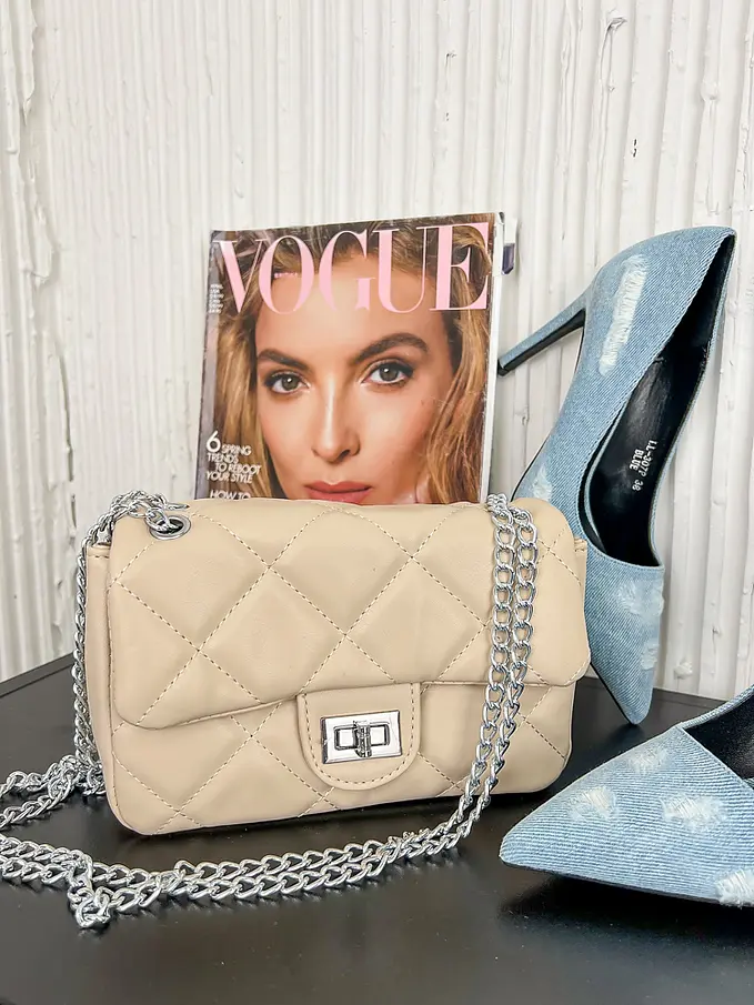 Női táska ezüst színű lánccal CELESTIA