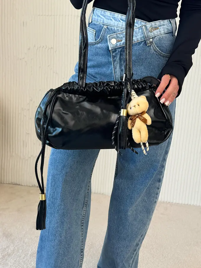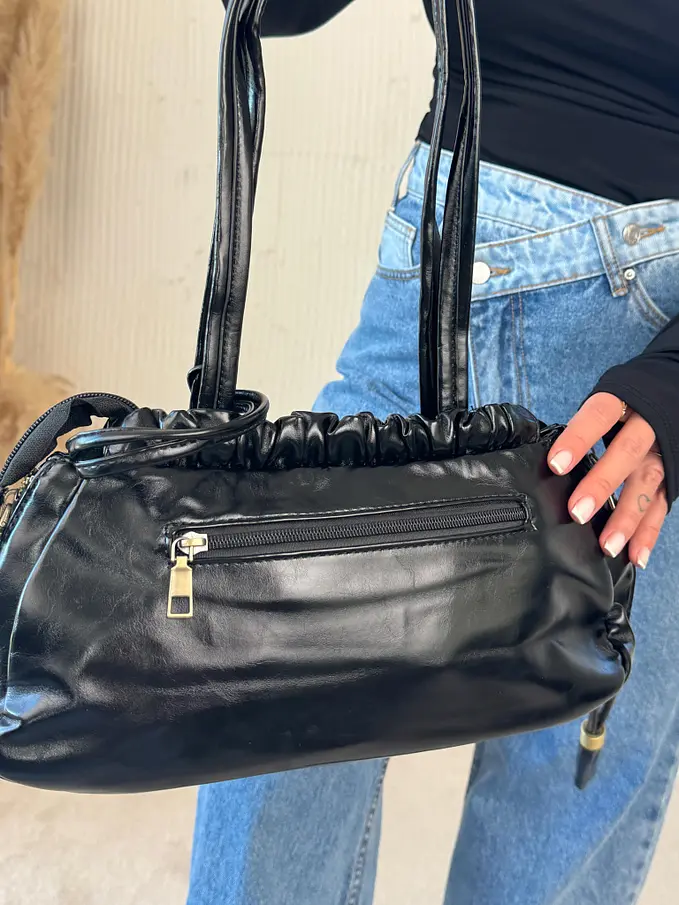 Elegancia és extravagancia egy darabban. A táskának van belső zsebe. A díszek arany színűek.