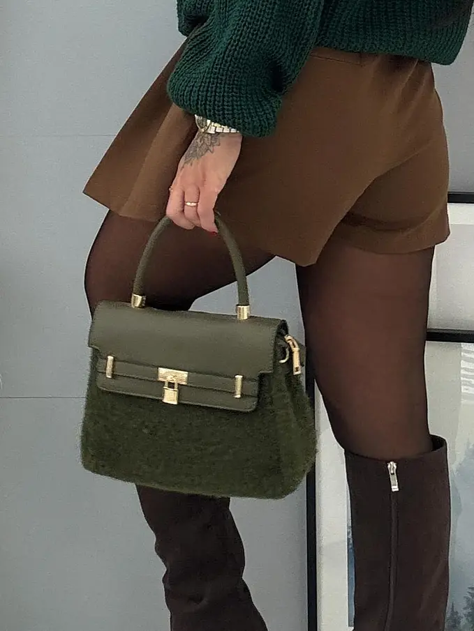 Anyag: szintetikus, műbőr hatás plüss anyaggal kombinálva
