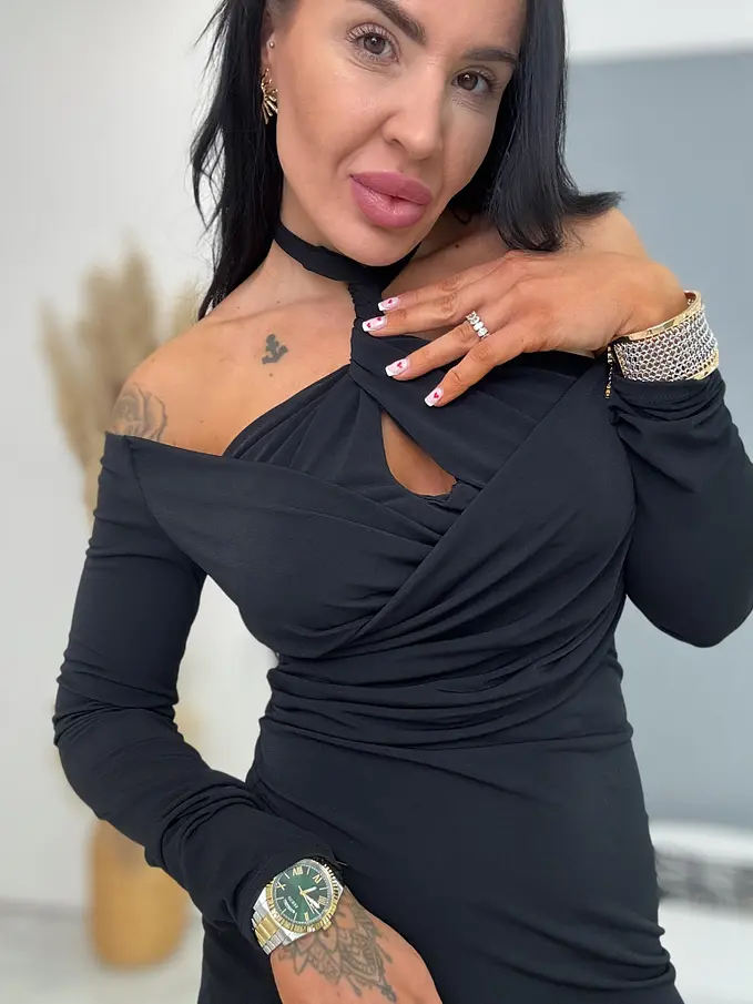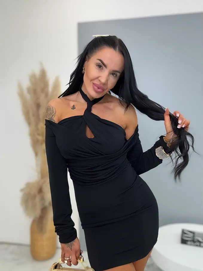 Ez az elasztikus, testhez simuló miniruha igazán merész és nőies választás különleges alkalmakra. A rugalmas anyag tökéletesen követi az alakot, kiemeli a vonalakat, miközben kényelmes viseletet biztosít egész este.