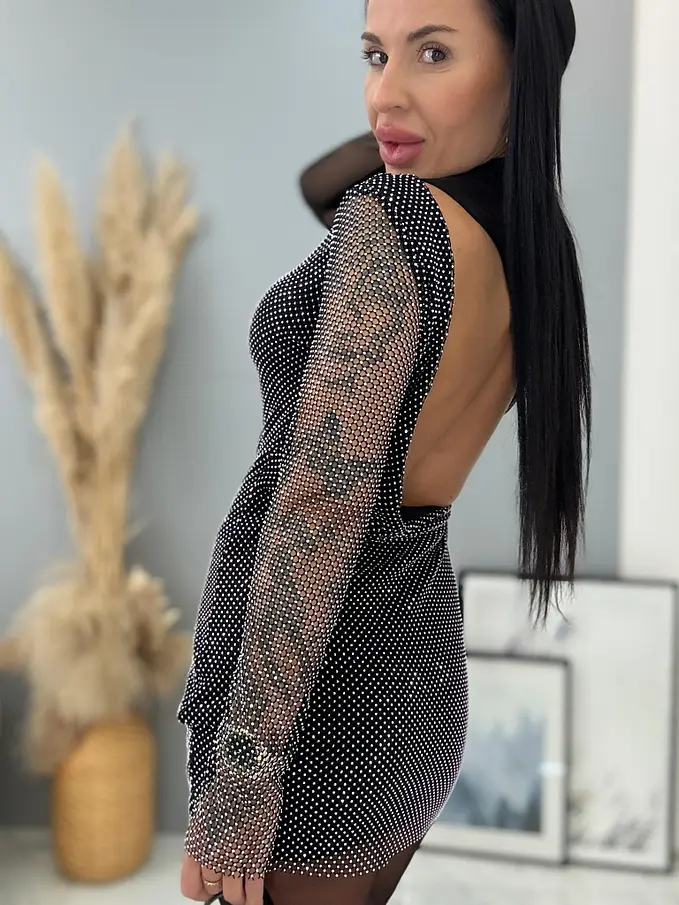 Nyitott hátú ruha kövecskékkel díszítve PHILIPPA