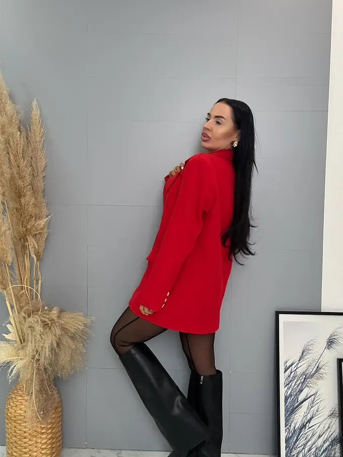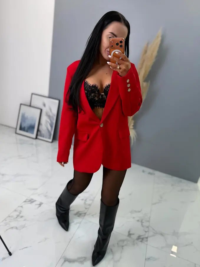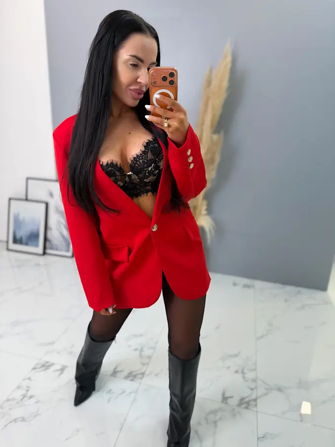 Zakó kellemes, nem elasztikus anyagból. A zakónak gombjai vannak. Válltöméssel rendelkezik.