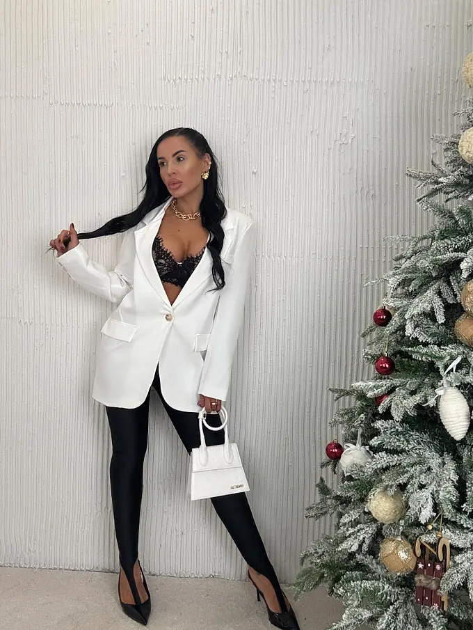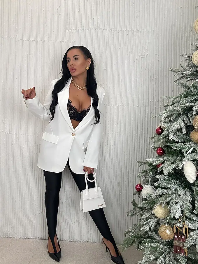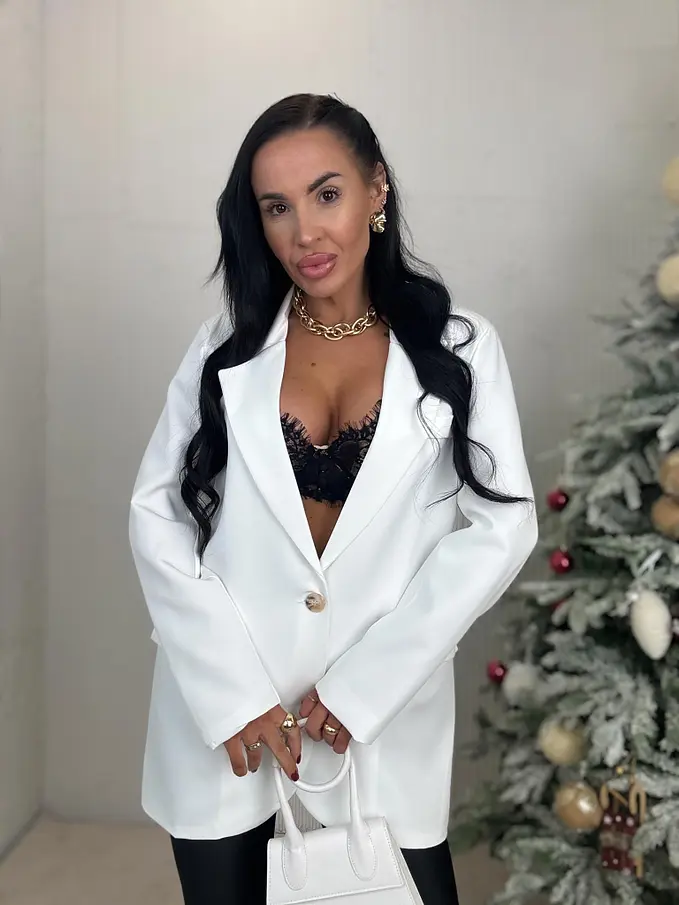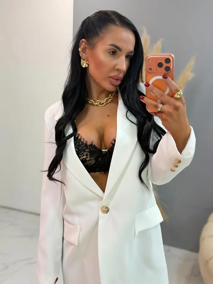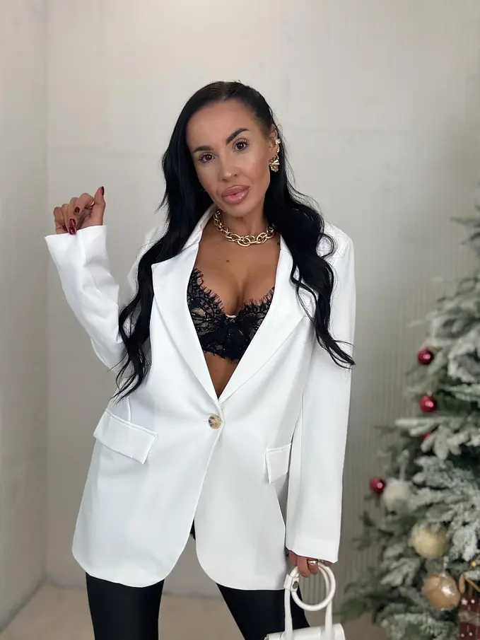 Zakó kellemes, nem elasztikus anyagból. A zakónak gombjai vannak. Válltöméssel rendelkezik.