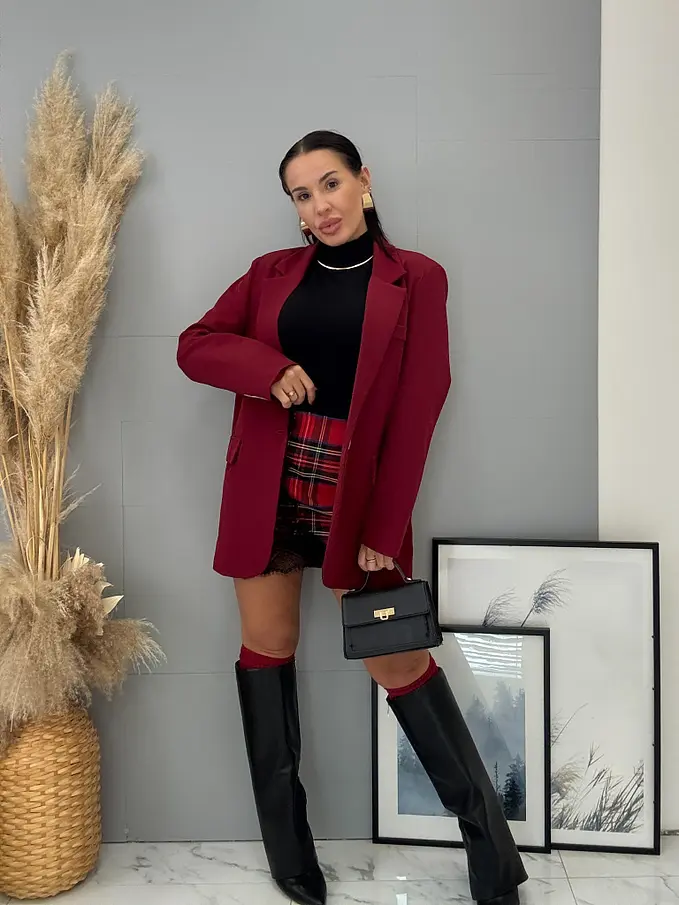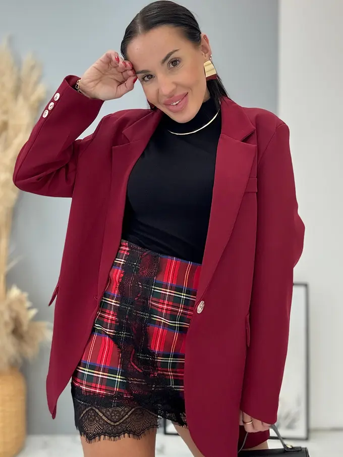 Zakó kellemes, nem elasztikus anyagból. A zakónak gombjai vannak. Válltöméssel rendelkezik.