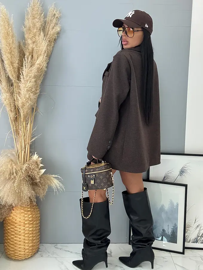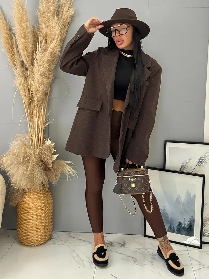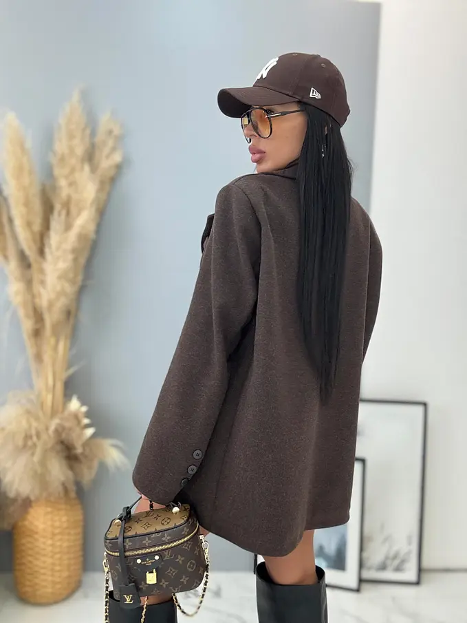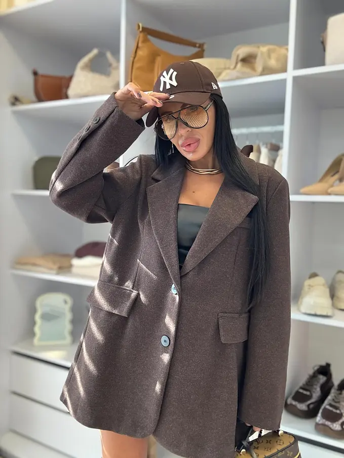 Zakó kellemes, nem elasztikus anyagból. A zakónak gombjai vannak. Válltöméssel rendelkezik.