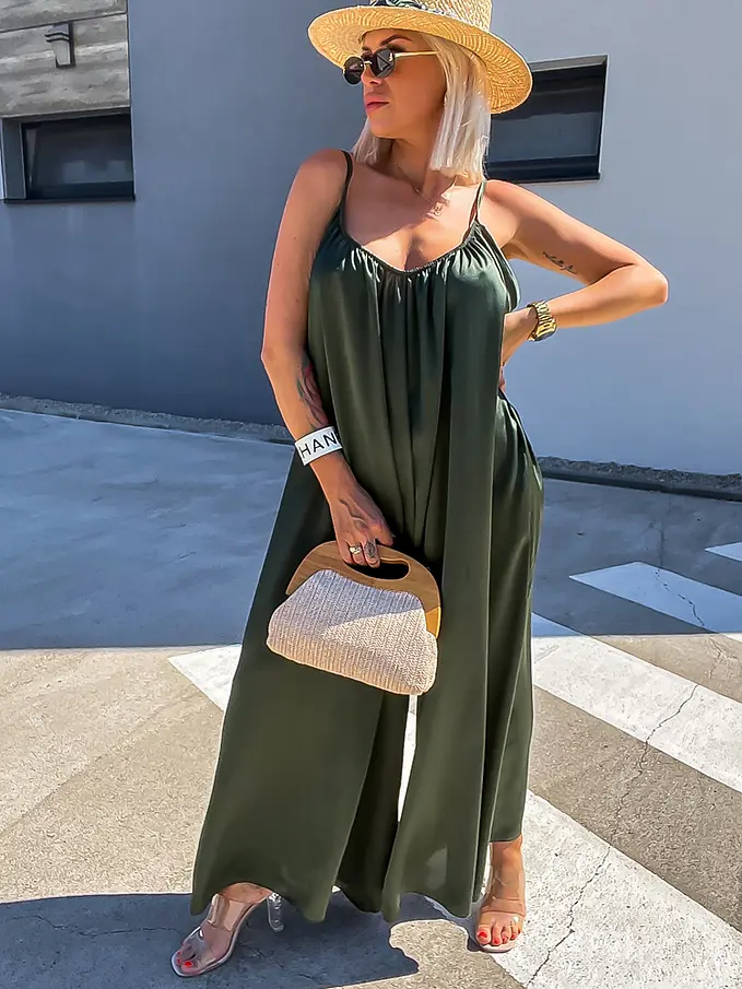 Csodaszép overál, mely tökéletes választás bármilyen eseményre. Anyaga kellemes hűsítő, de nem elasztikus.