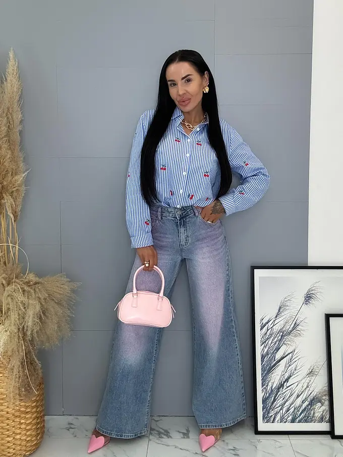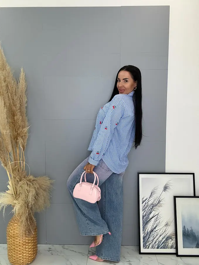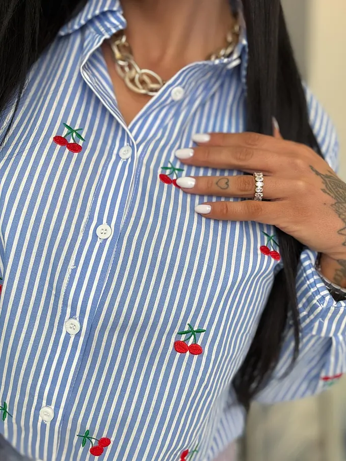 Pamut csíkos ing cseresznye hímzéssel CHERRY