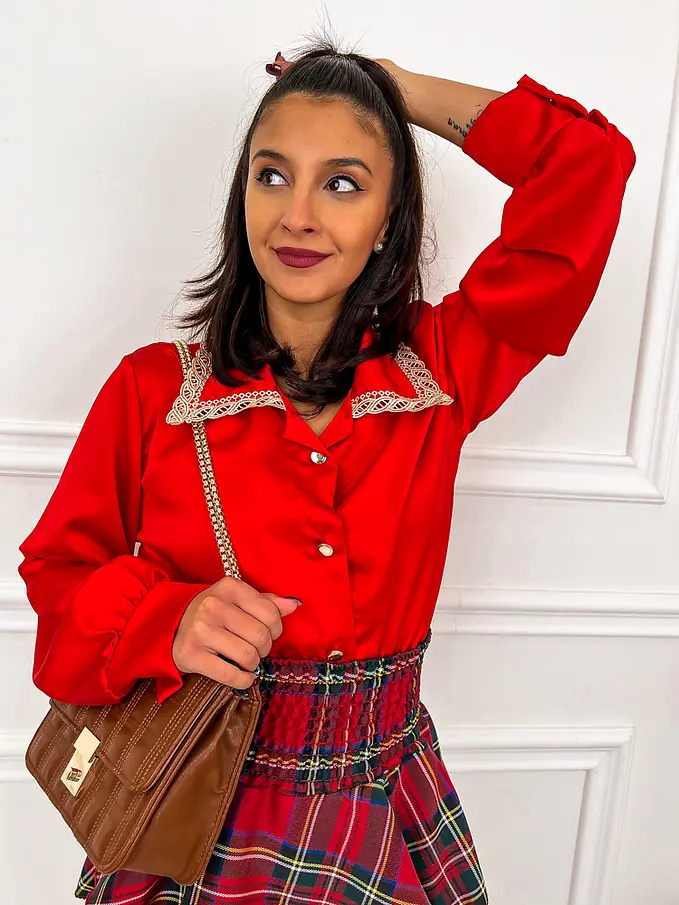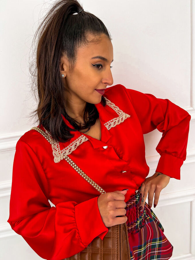 Piros szatén blúz NIKA