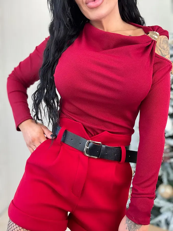 Alakot kiemelő fazonú sort, övvel. Enyhén elasztikus, kellemesen meleg anyagból készült.