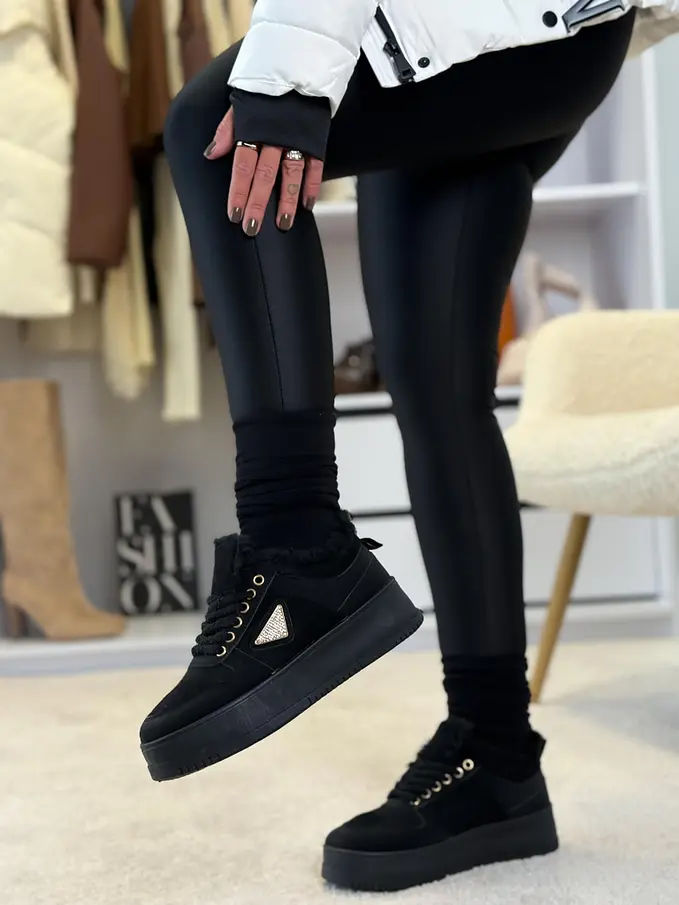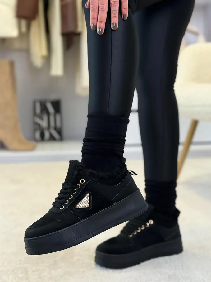 Élvezze a sportos eleganciát ebben a modern cipőben. A dísz arany színű.