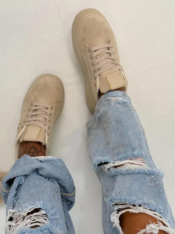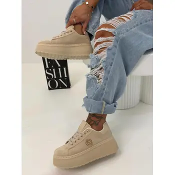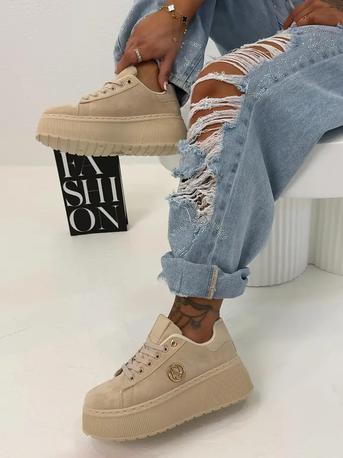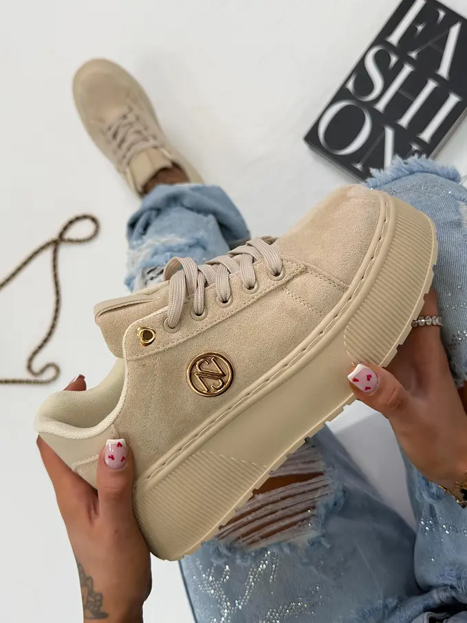 Platformos velúr sportcipő arany színű díszekkel JANELA