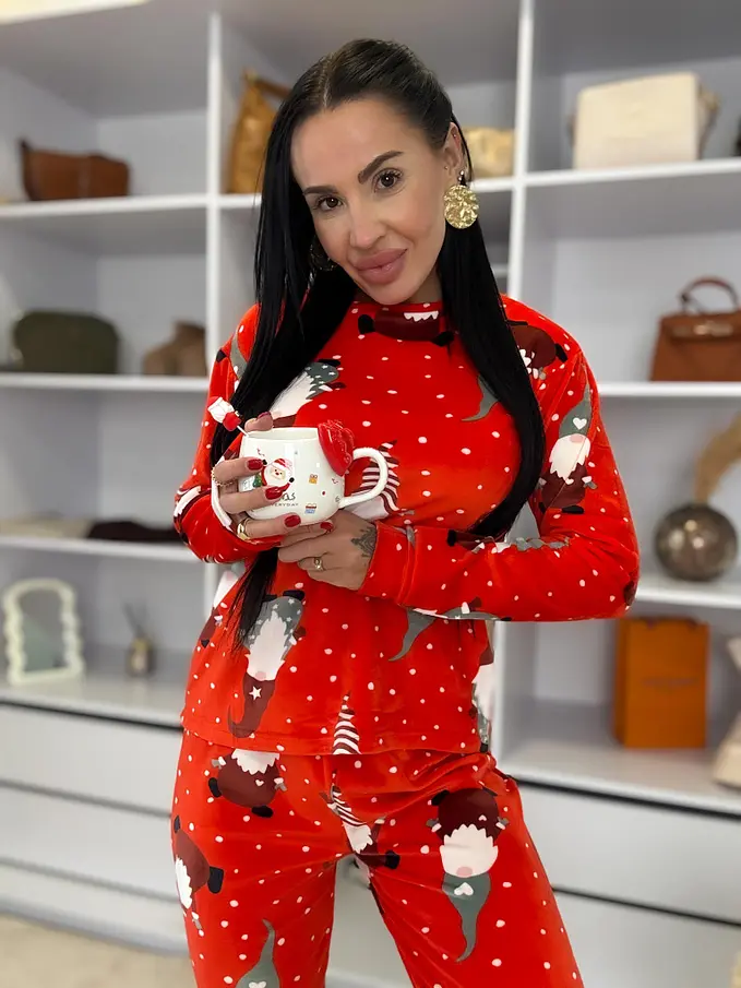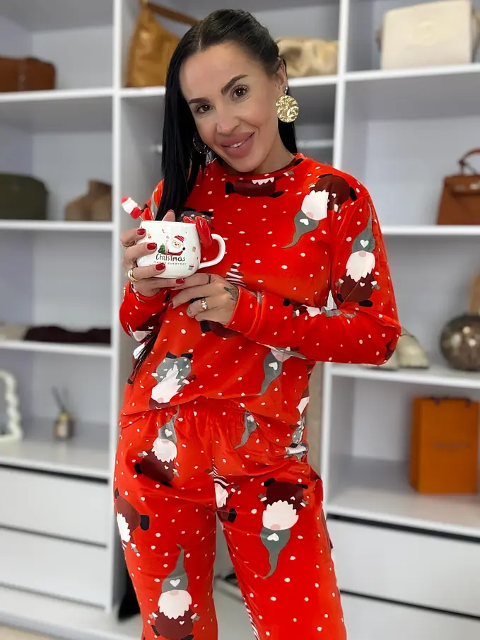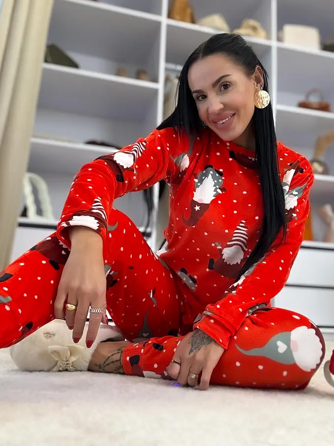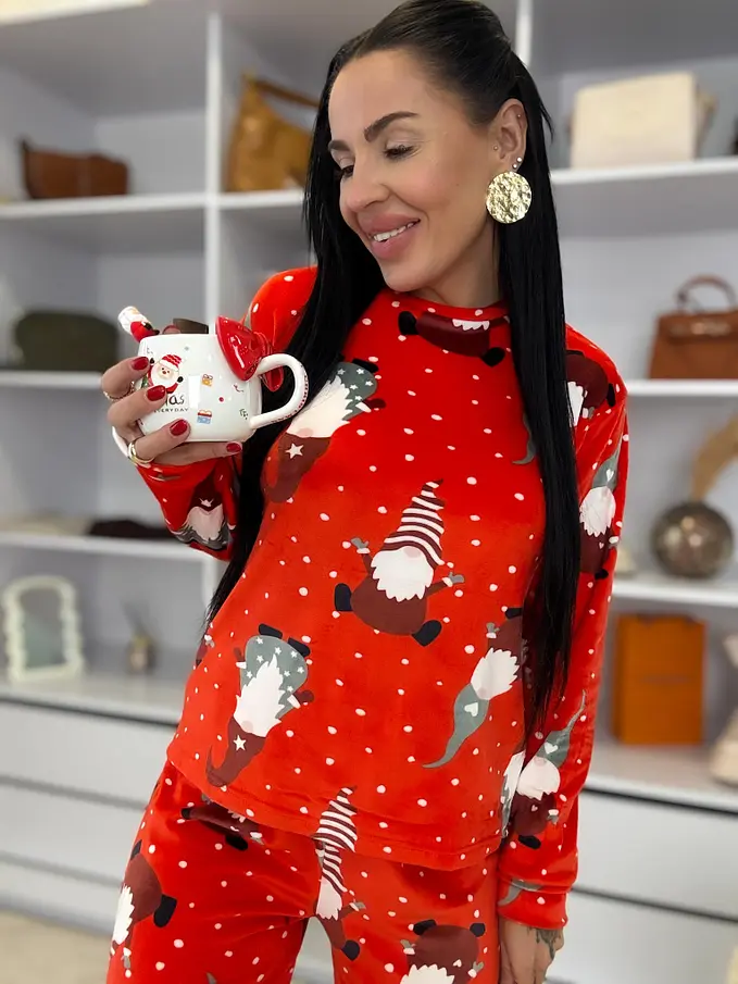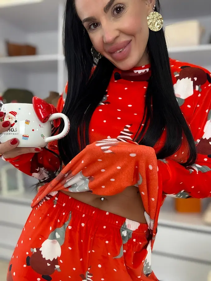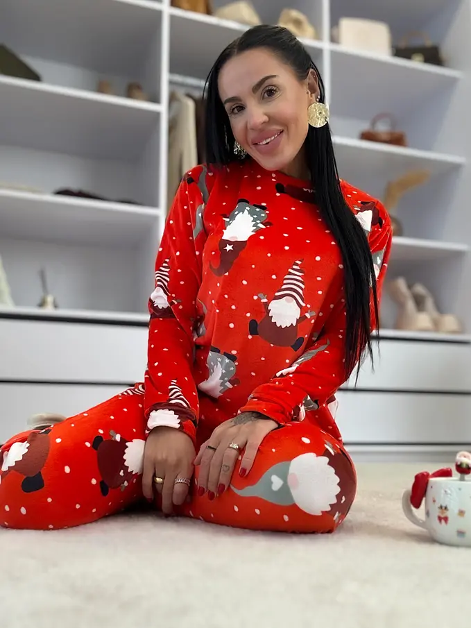 Meleg plüss pizsama. A nadrág gumis derekú.