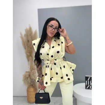 Pöttyös szatén blúz övvel POLKA