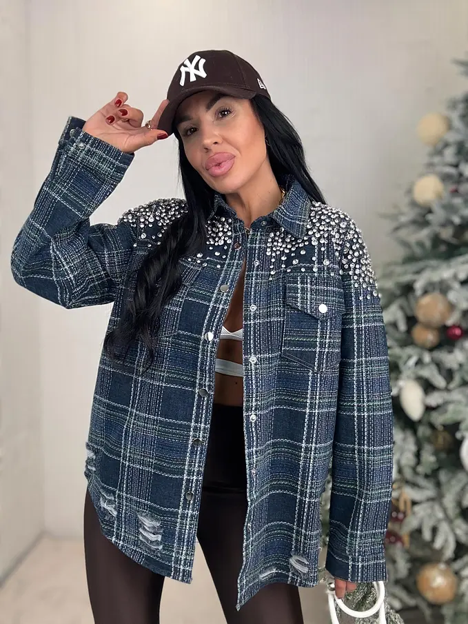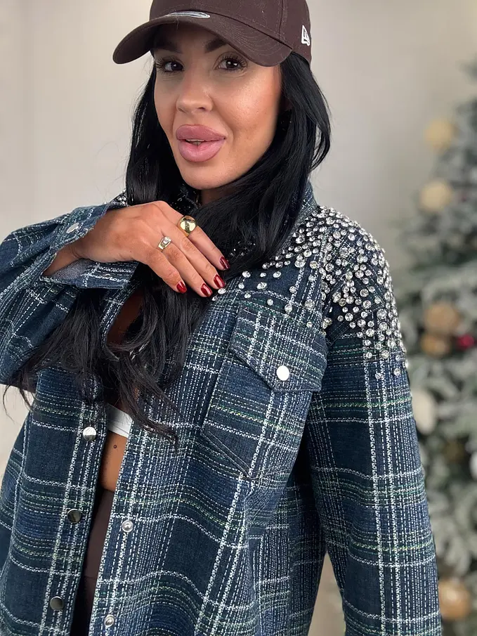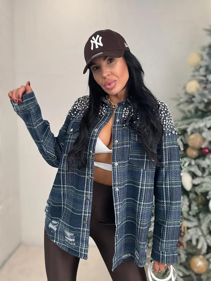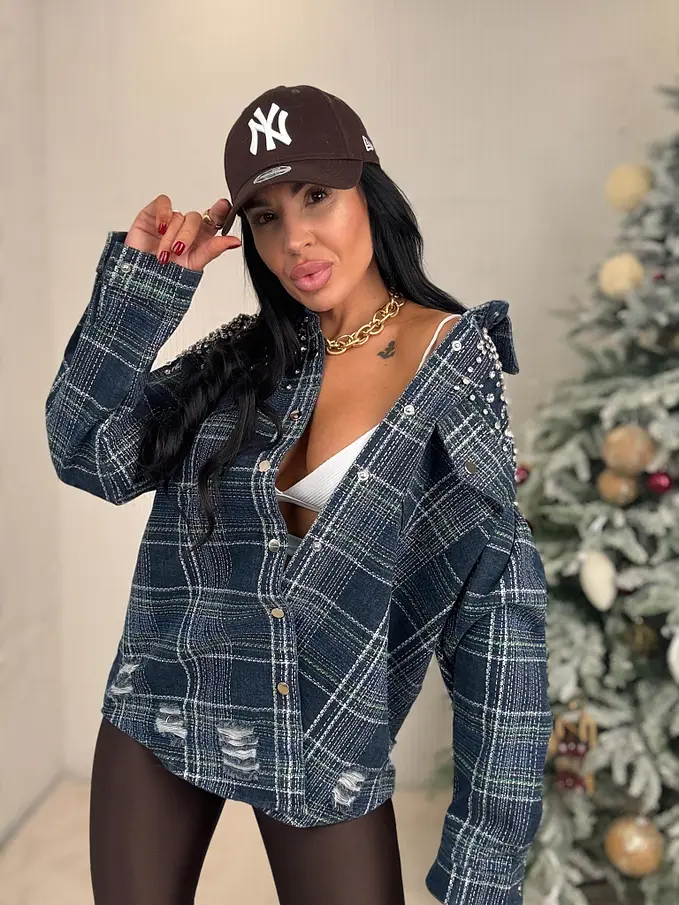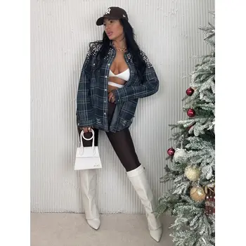 A fekete hajú modell 164 cm magas és 57 kg. S méretű ruhákat visel.