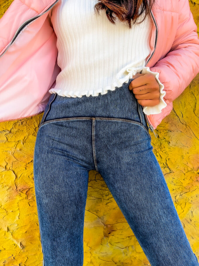 Stílusos farmer hatásu leggings magas derékkal.