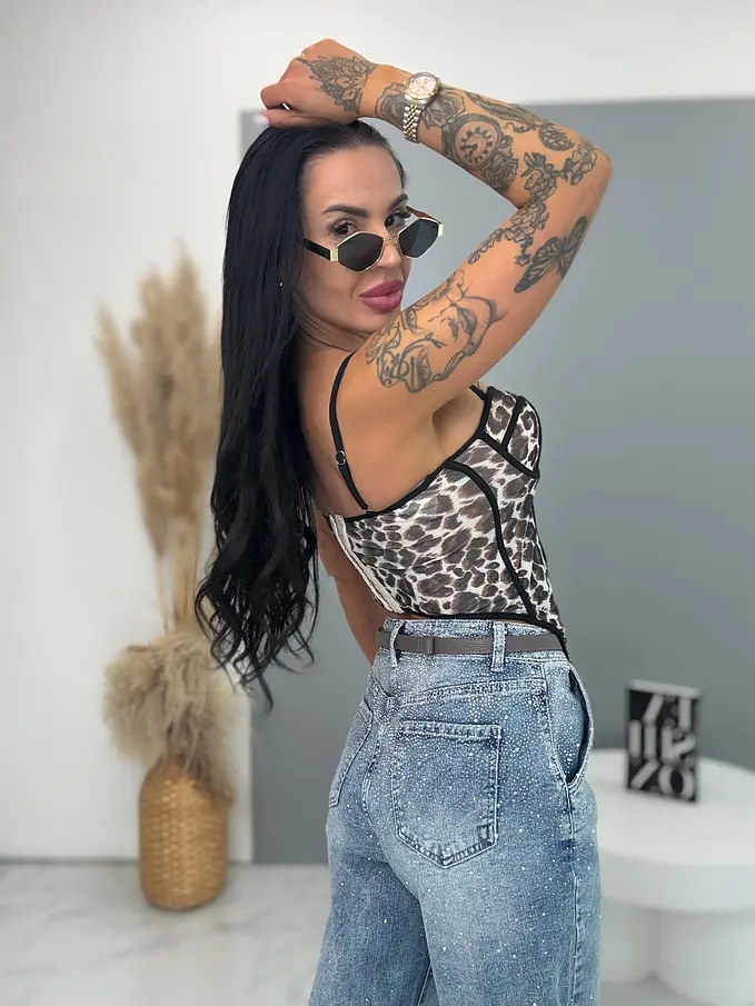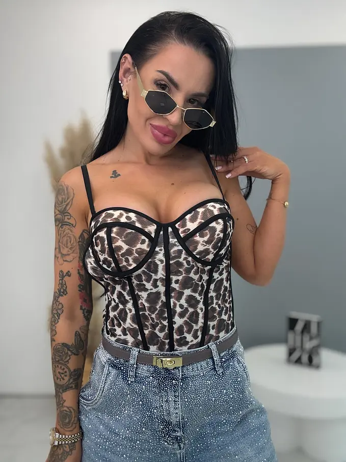 Push-up korzett top leopárd mintával