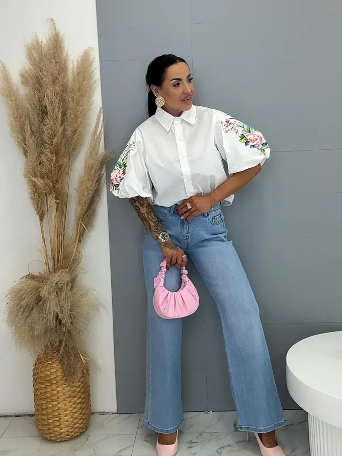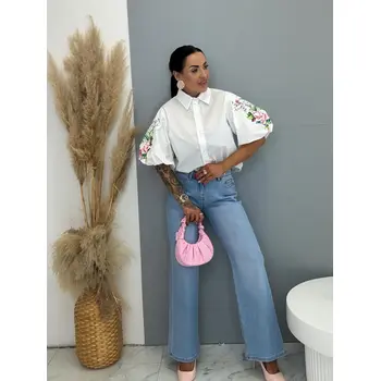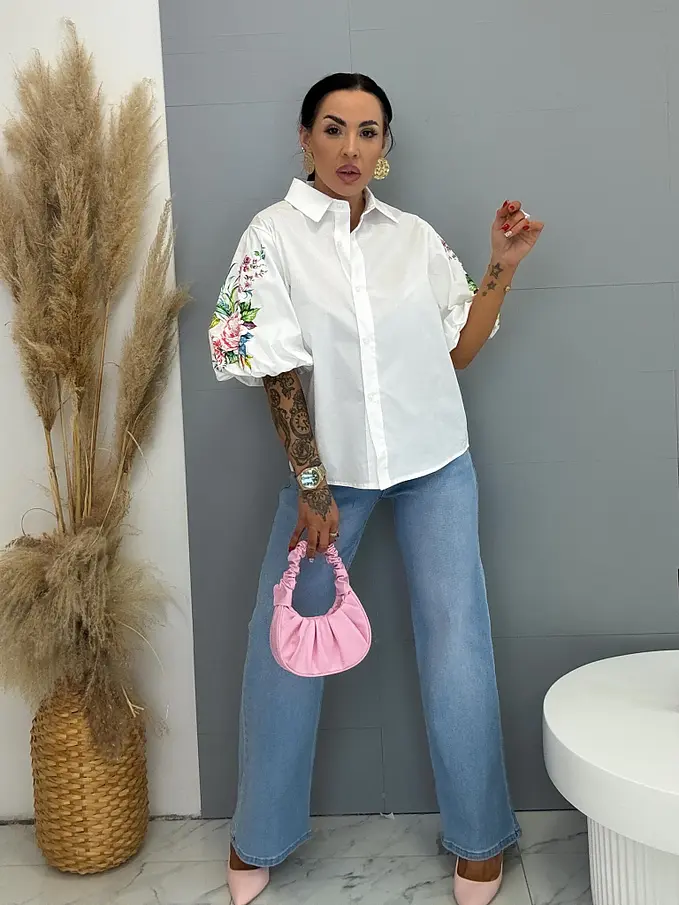 Női prémium rövid ujjú ing virágmintával, mindennapi viseletre. Anyaga kellemes tapintású, de nem rugalmas.“
