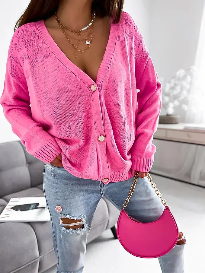 A barna hajú modell 158 cm magas és 50 kg. S méretű ruhákat visel.