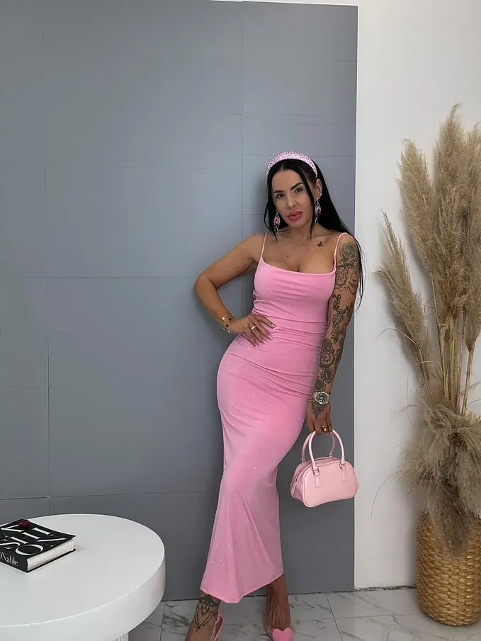 Sparkly maxi pántos ruha kövecskékkel díszítve RENI